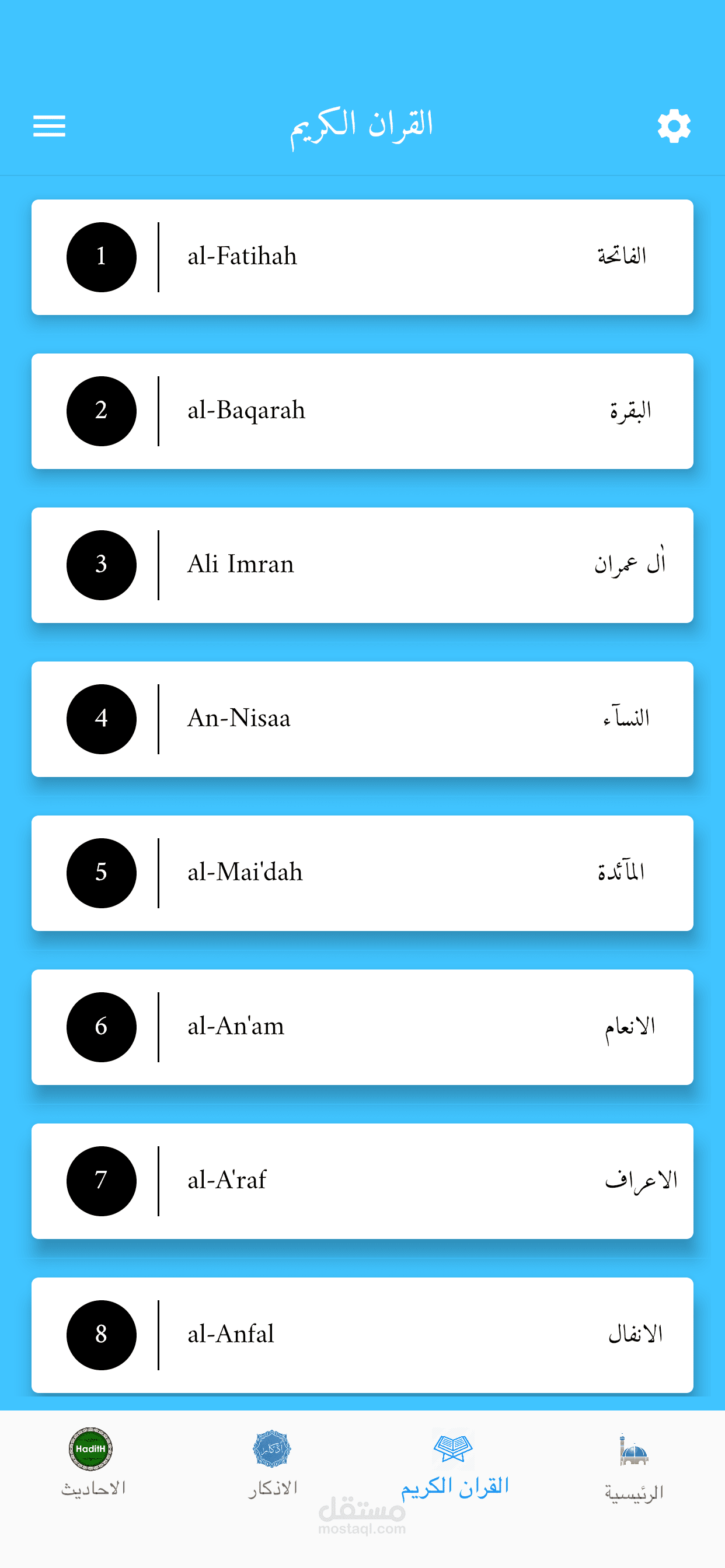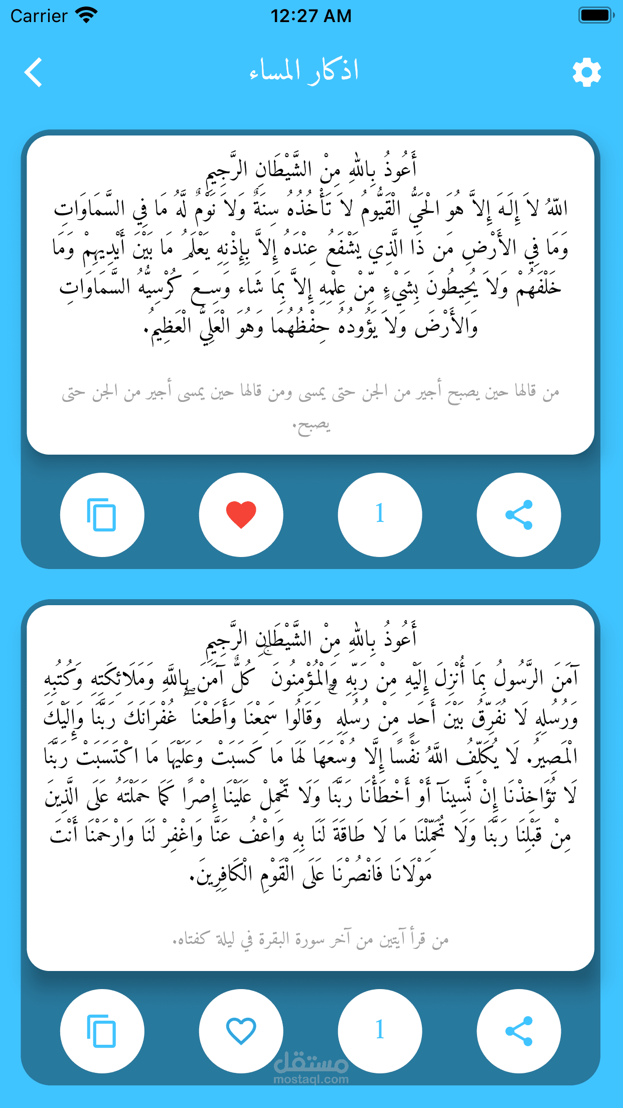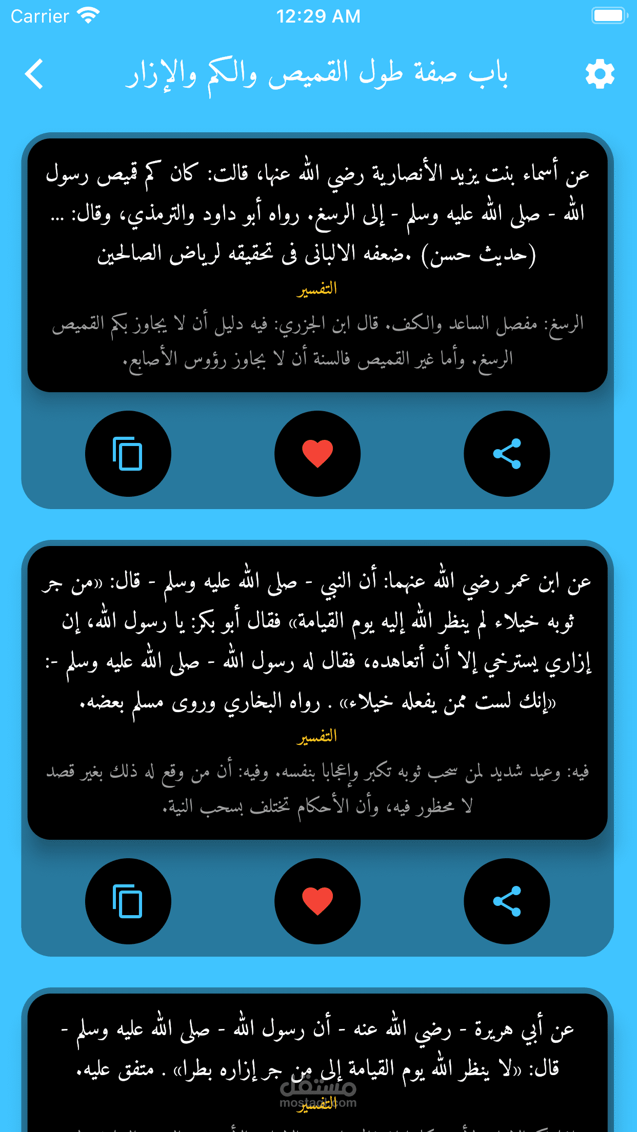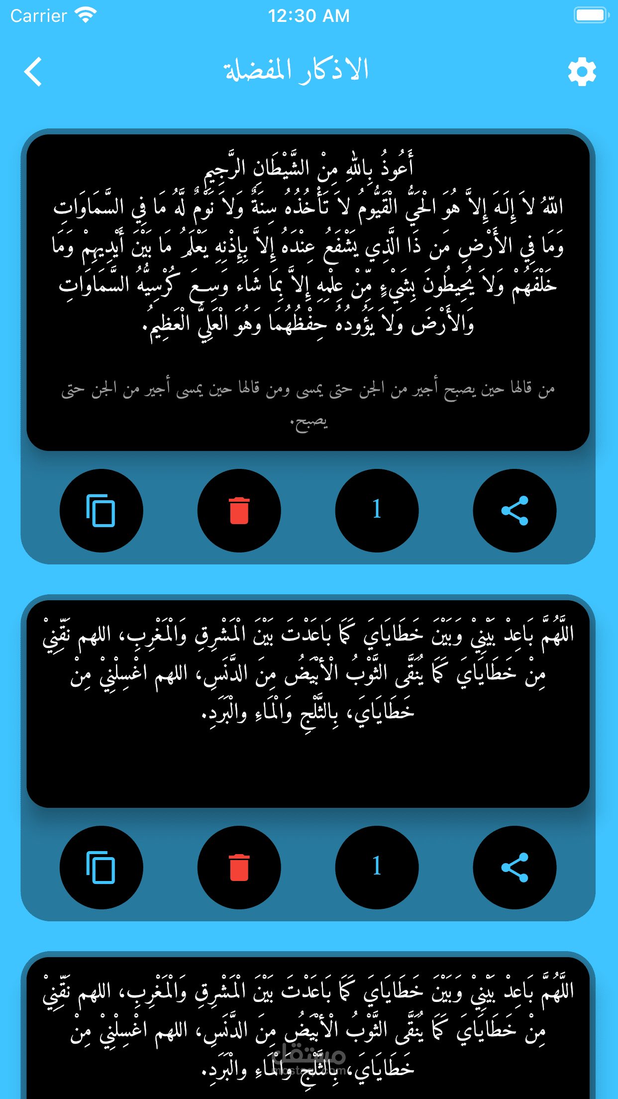 9- يوجد به صفحة للاحاديث المفضلة والاذكار .