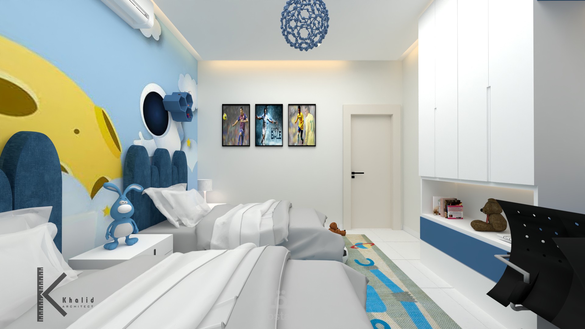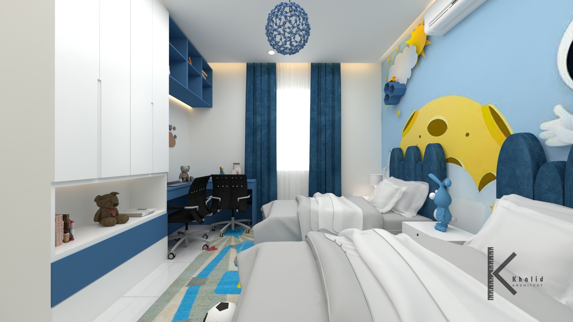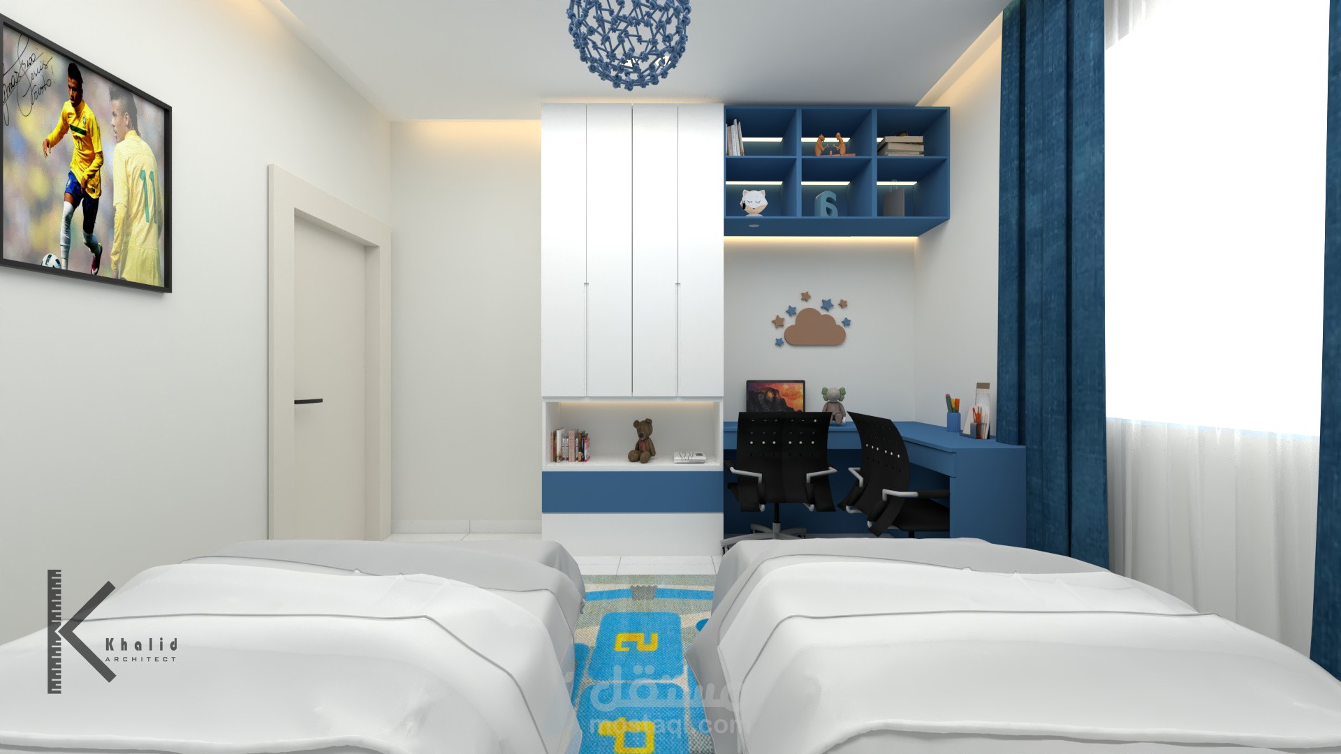 تصميم داخلي لغرفة نوم ولد وتجهيز المخططات التنفيذية للتنفيذ