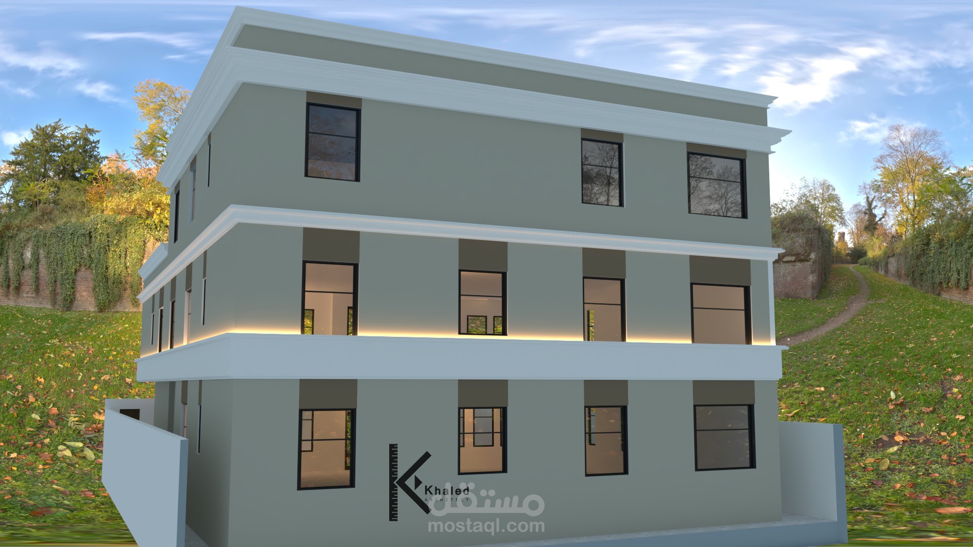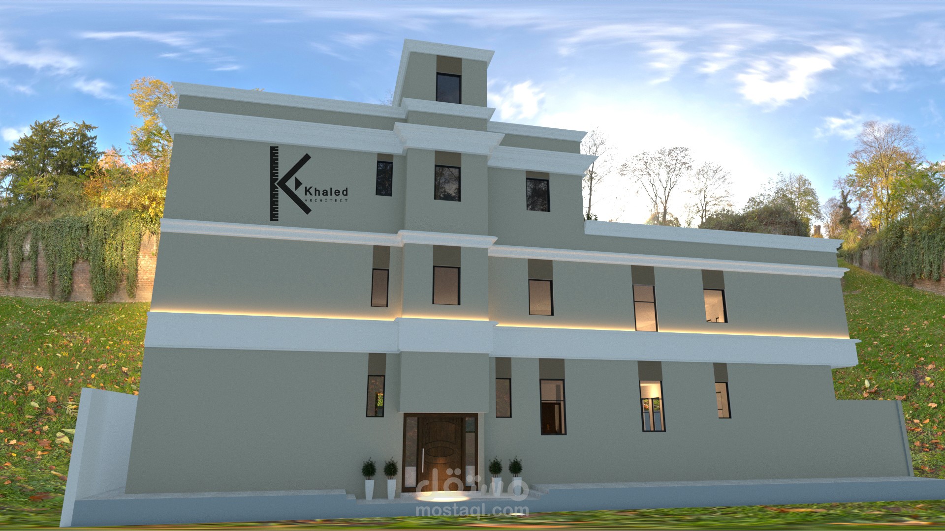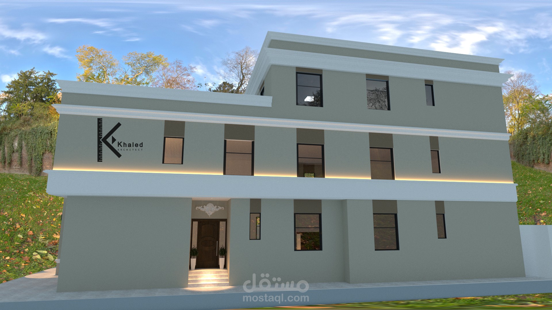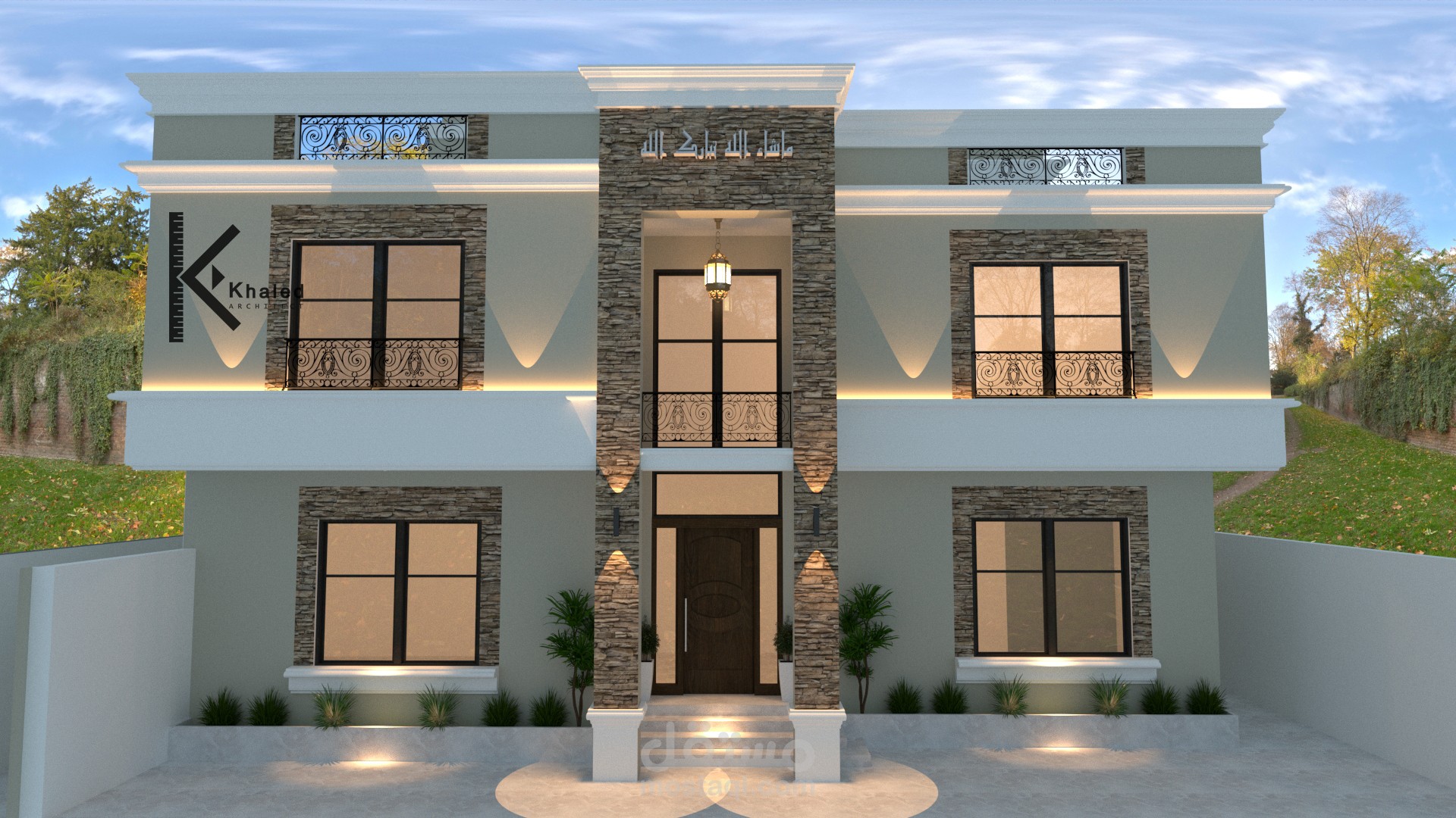 تصميم واجهات فيلا بالسعوديه تم دمج طراز الواجهات بين المودرن والكلاسيك وتوزيع الانارة بشكل مدروس وتم تجهيز مخططات تنفيذية كاملة للمشروع