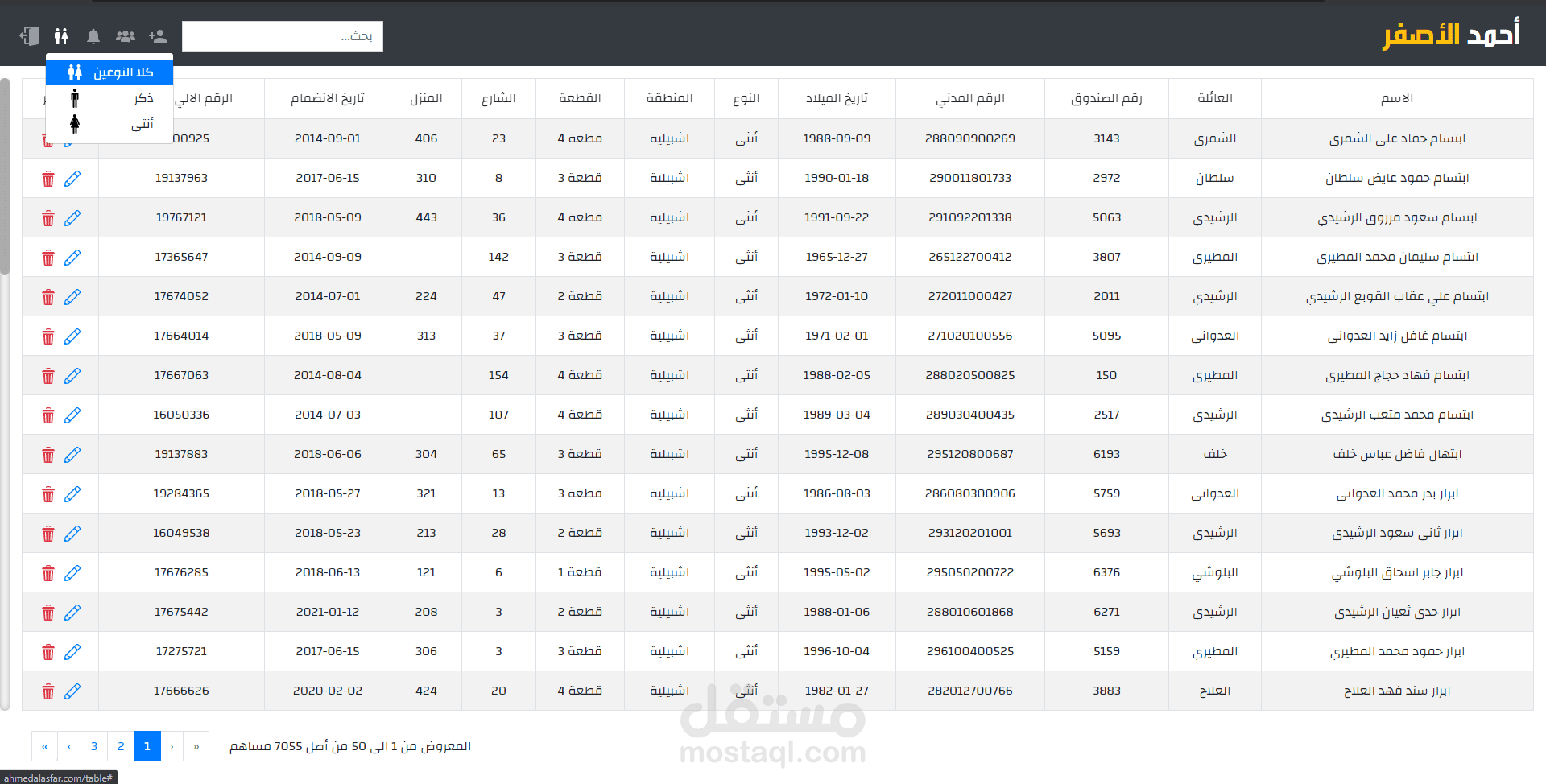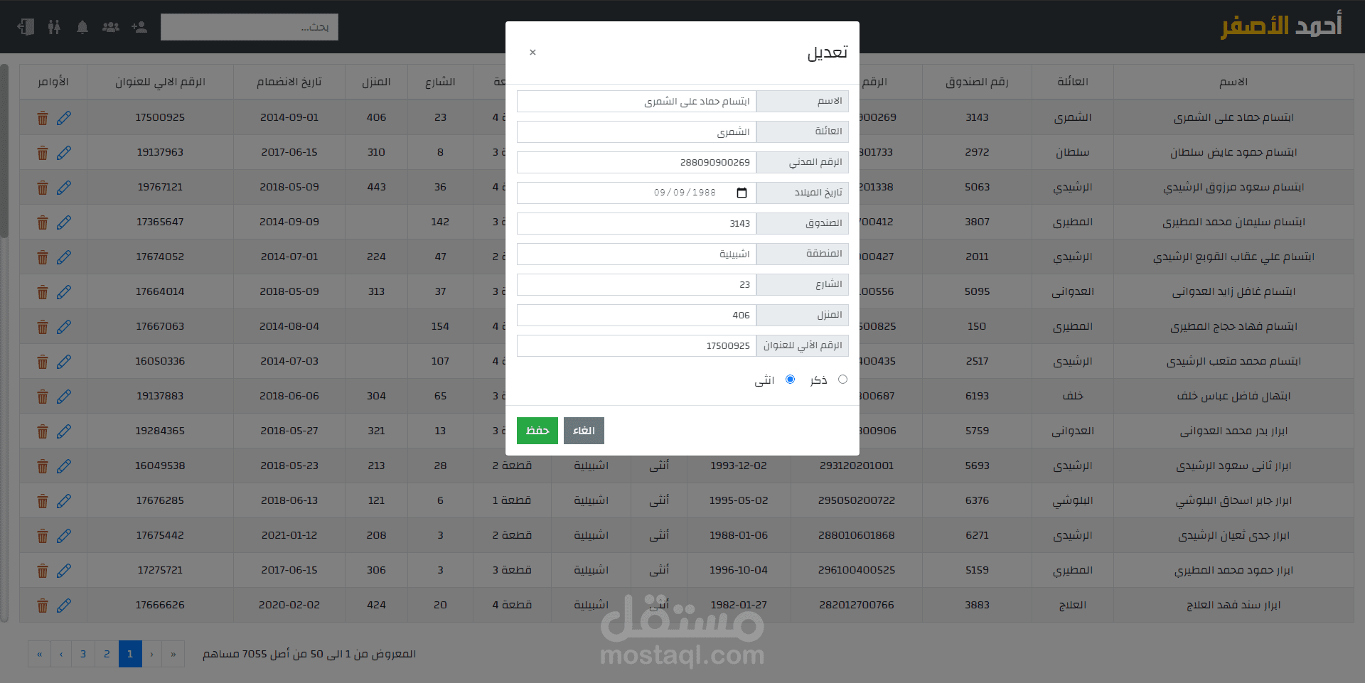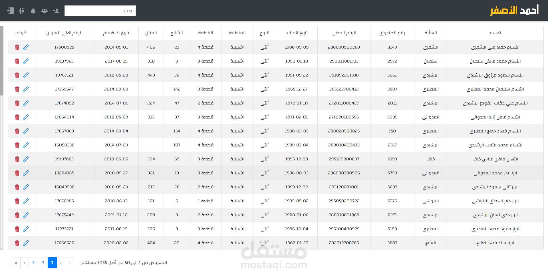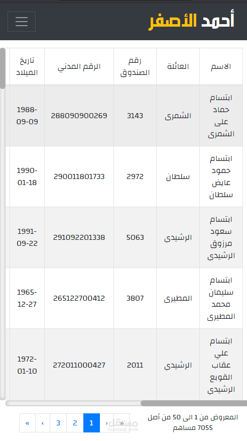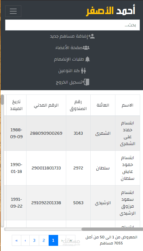 موقع لعرض بيانات جمعية اهلية بشكل رقمي يمكن البحث وبه خاصية اضافة وتعديل وحذف كما يوجد للادمن صفحة للتحكم بالاعضاء من حيث تعطيل الحساب او حتى حذفه. يتميز بالسرعة في البحث رغم كمية البيانات الكثيرة جداً المحتوي عليها كما انه متوافق مع جميع مقاسات الشاشات