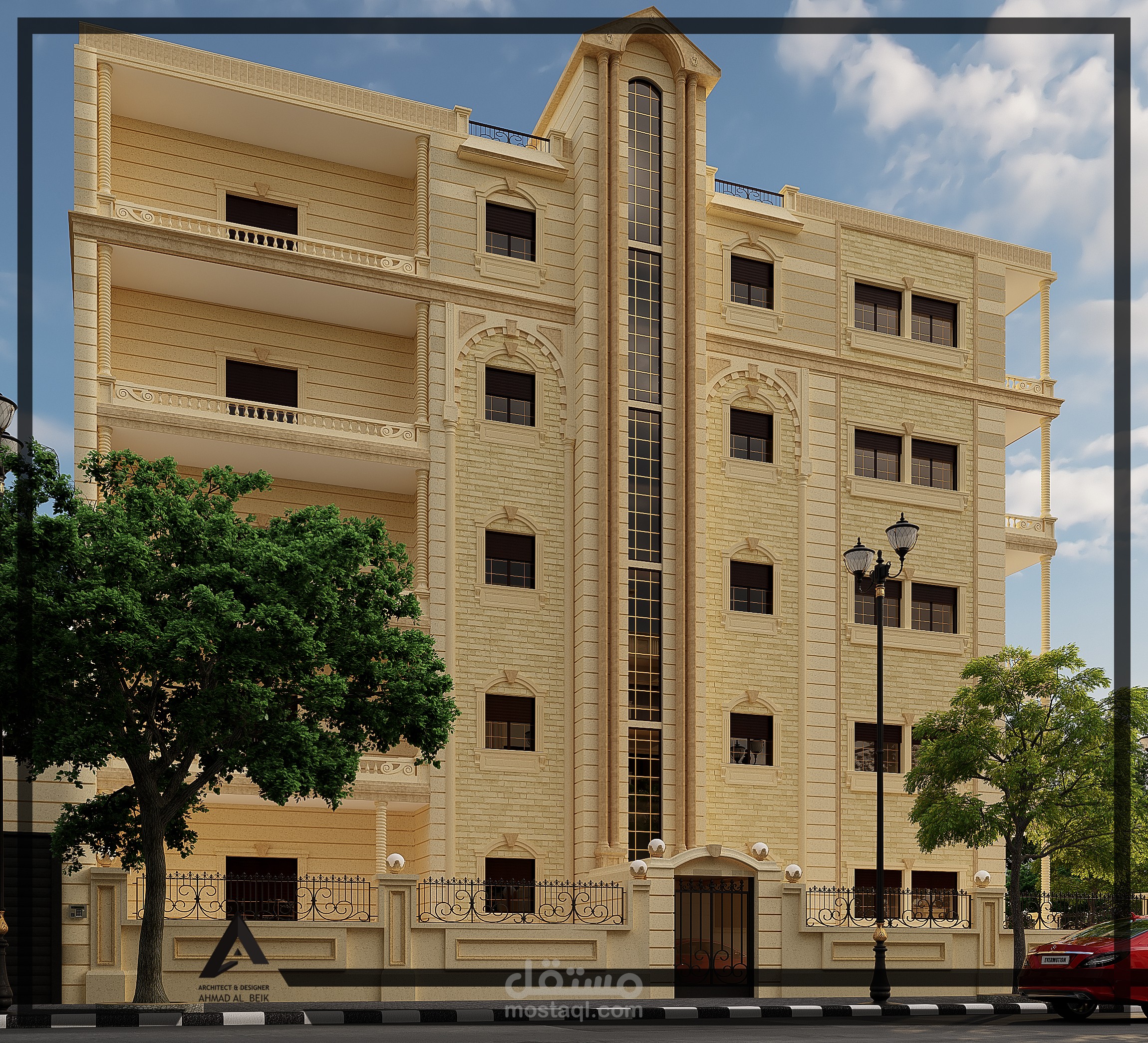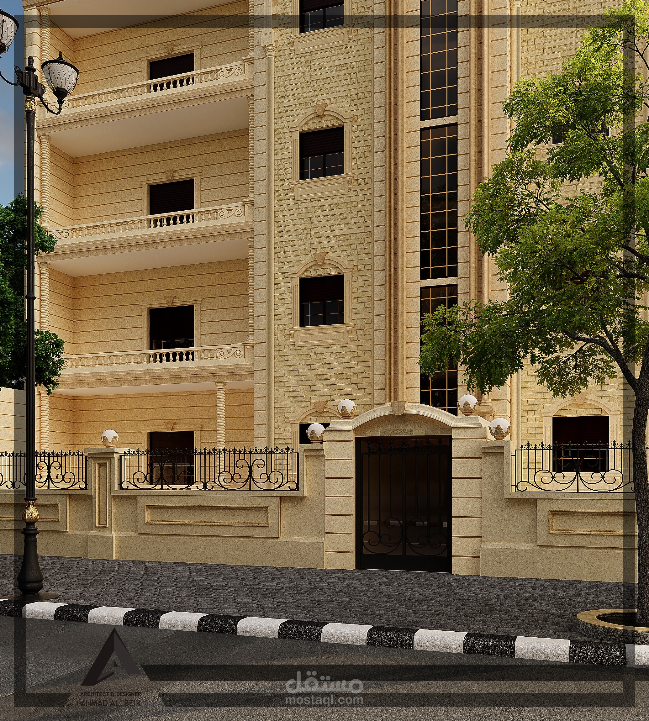 أحد اعمالي لتصميم واجهات خارجية لمبنى سكني ضمن مدينة حلب في الجمهورية العربية السورية باستخدام برنامج 3ds max