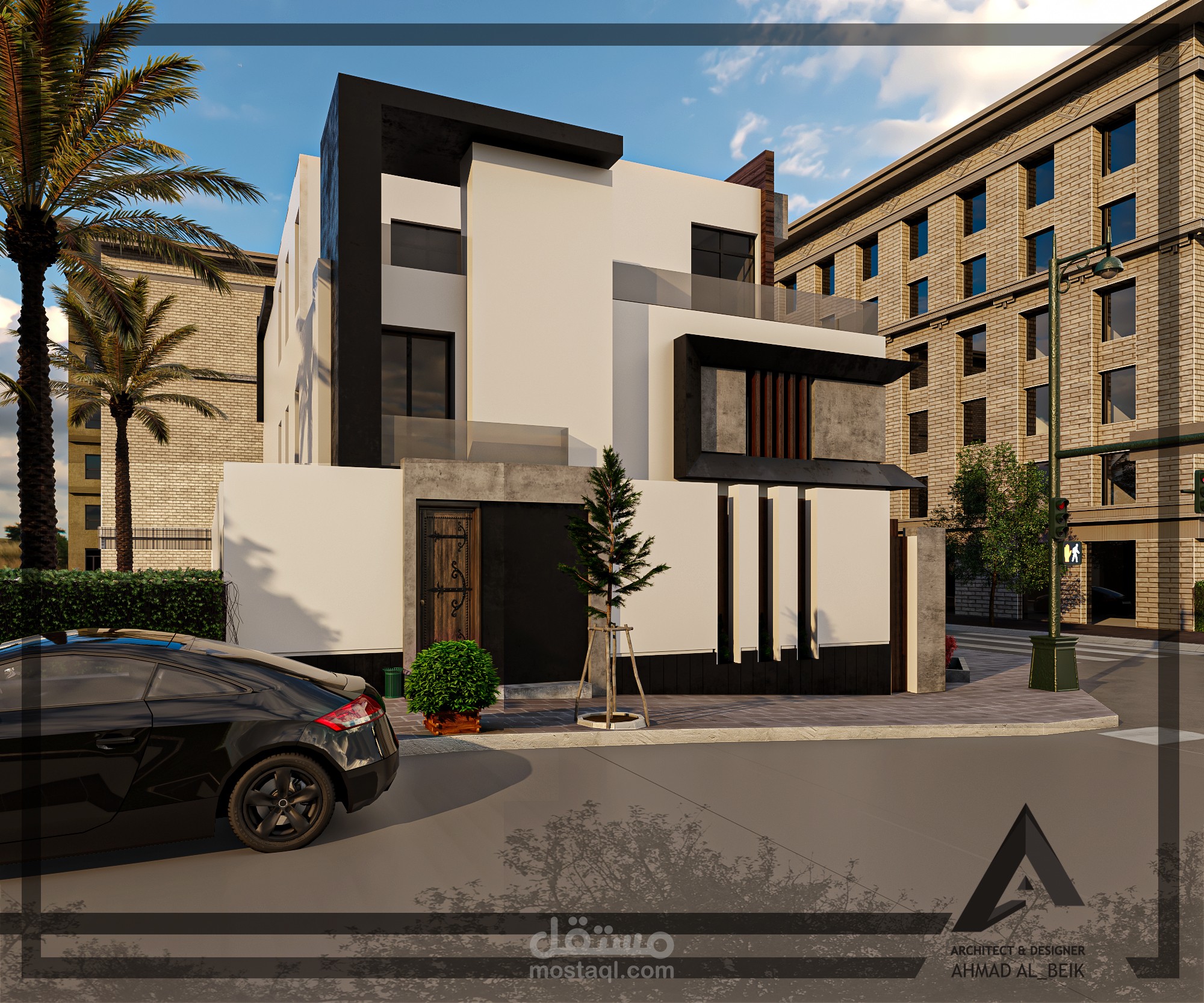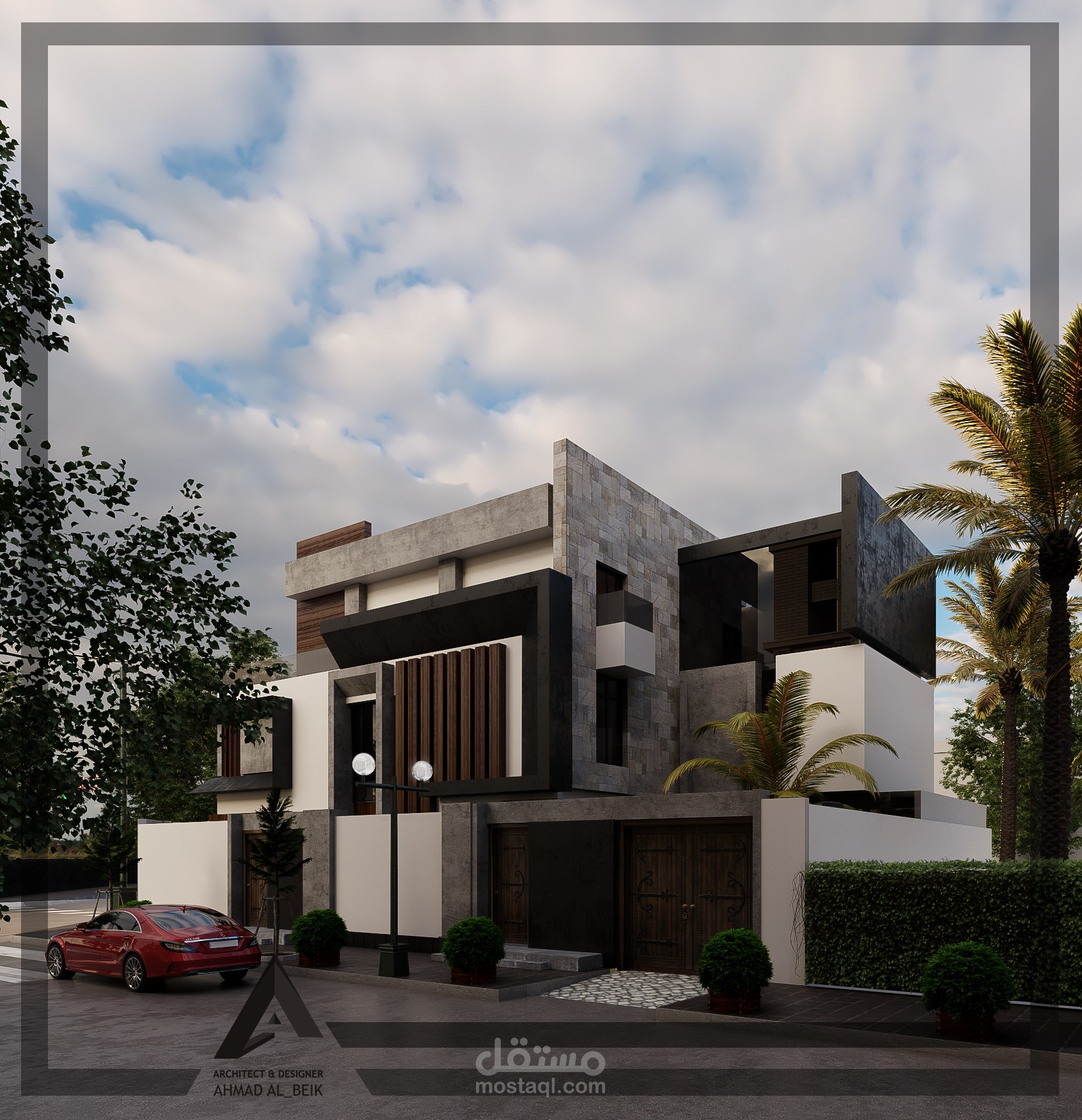 تصميم خارجي لفيلا في المملكة العربية السعودية على الطراز الحديث