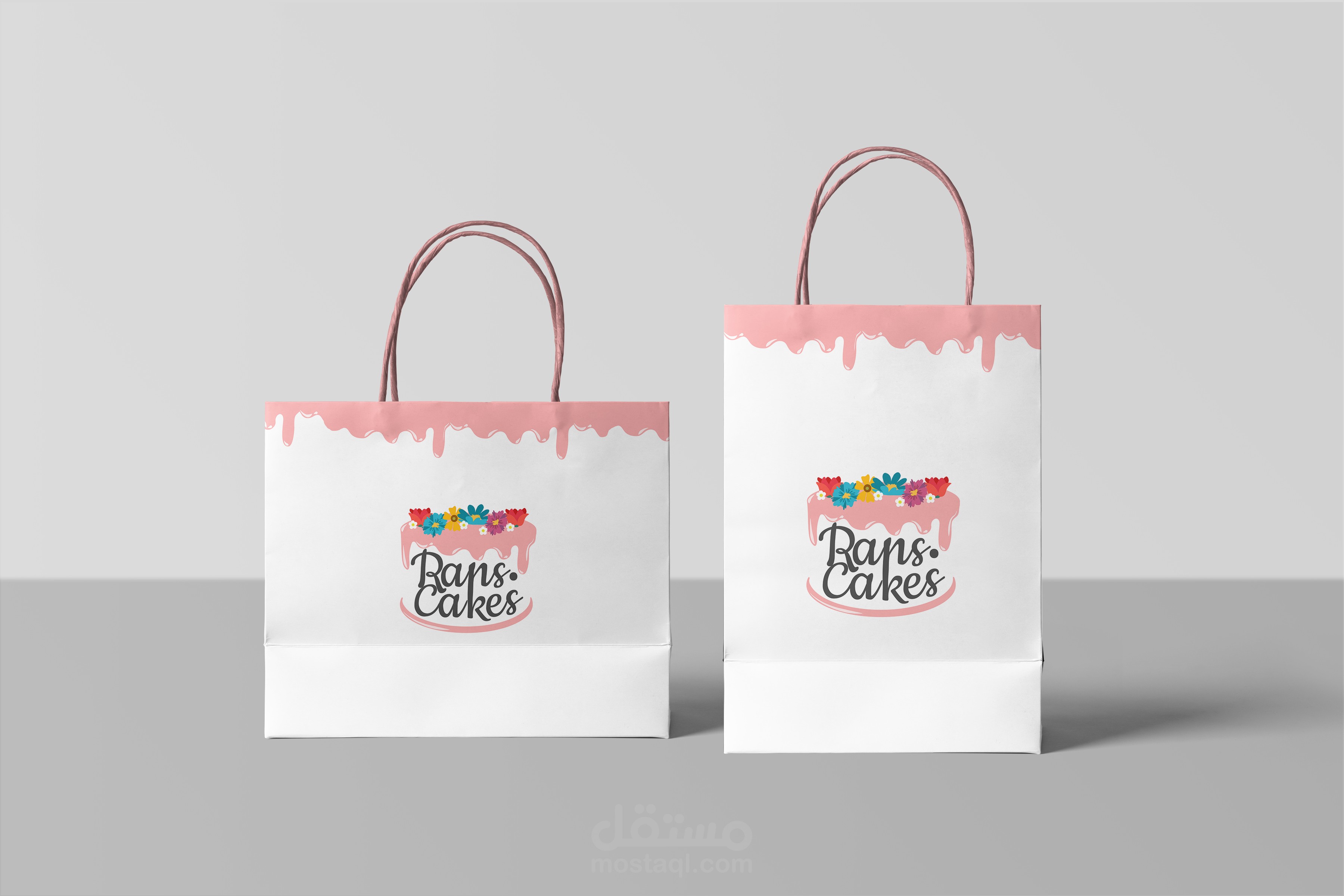 تصميم هوية بزنسس كيك : الشعار, الالوان,الكياس, بطاقة عمل , سوشل ميديا