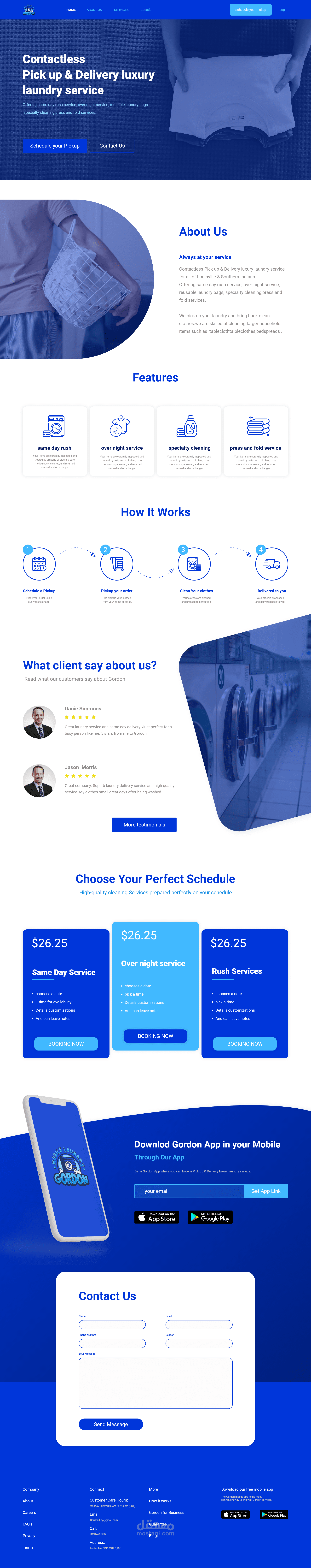تصميم صفحة هبوط لشركة GORDON لتنظيف الملابس