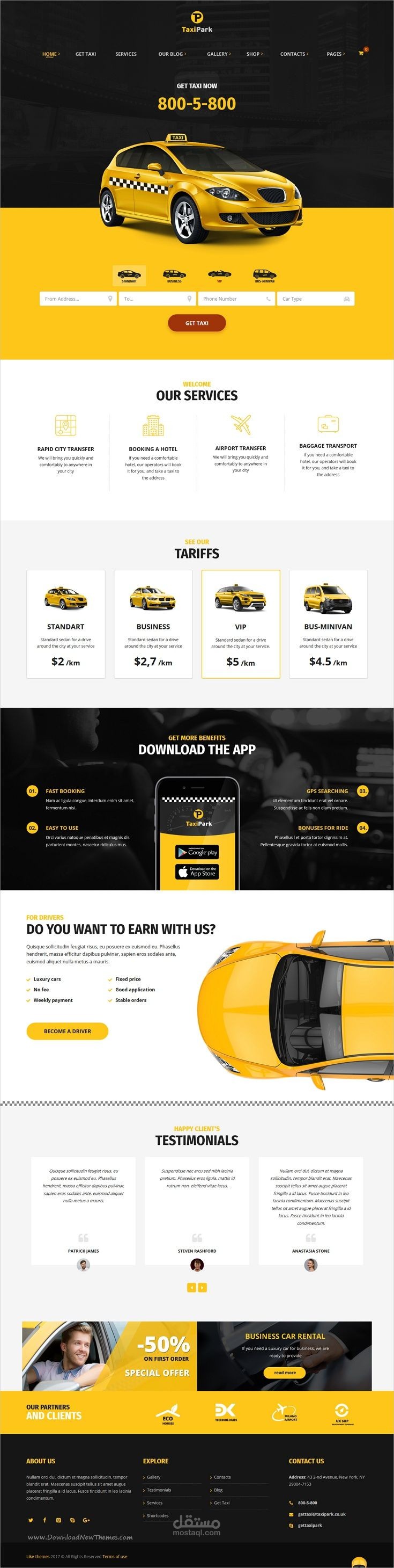 تصميم صفحة Landing Page لموقع خاص لإستأجار سياات التاكسي