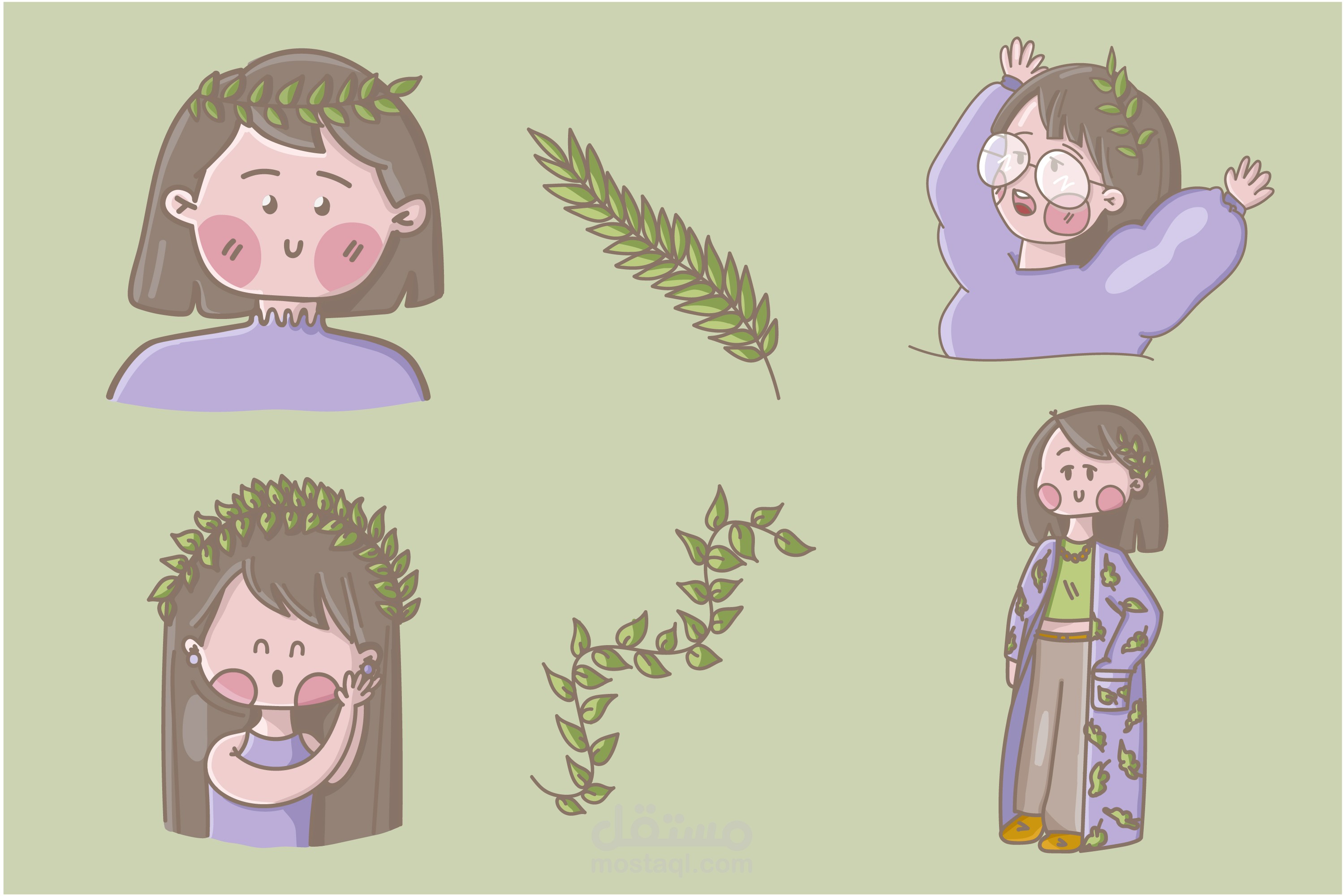 رسمة شخصية لطيفة بوضعيات مختلفة ببرنامج الاليستوريتر