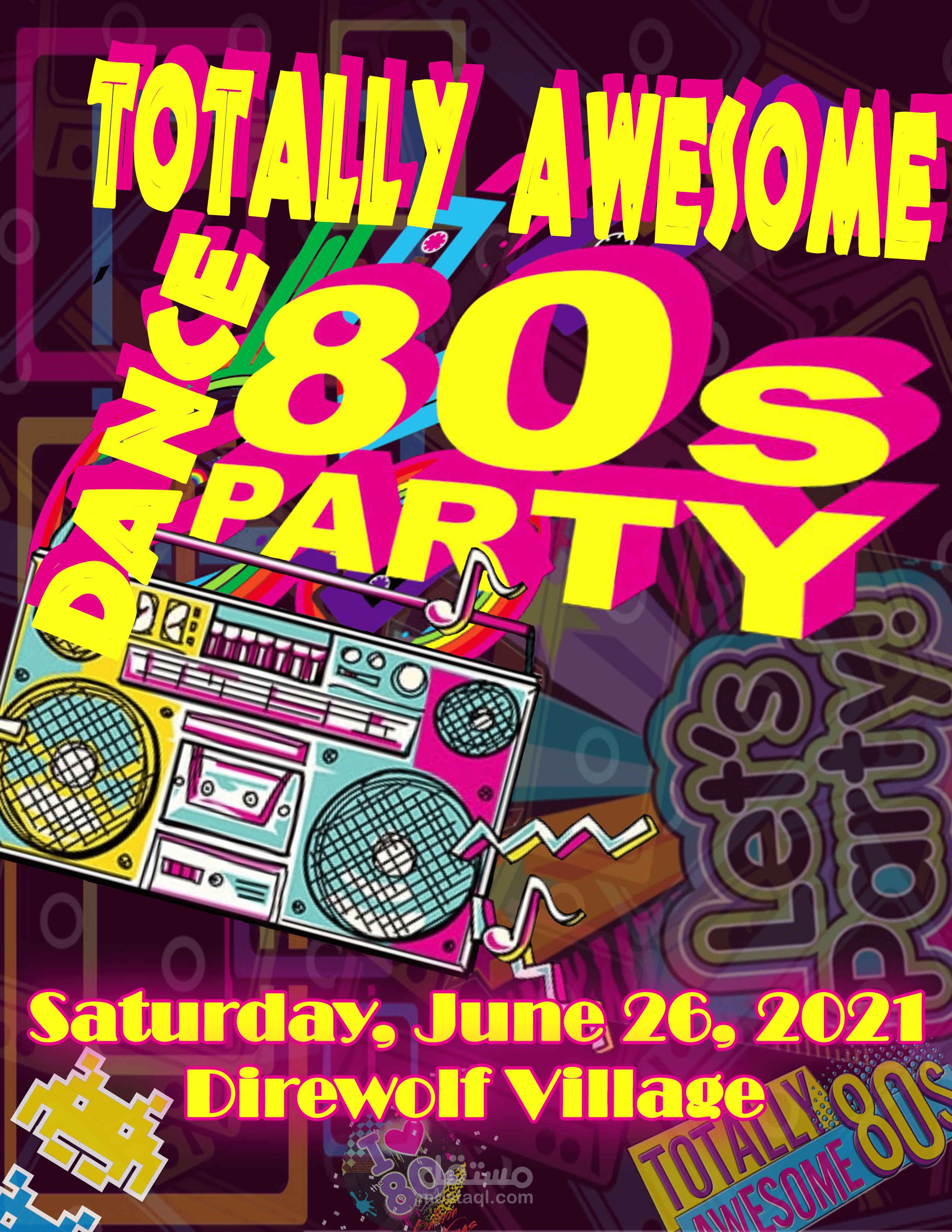 تصميم دعوة لحفل بنمط الثمانينات