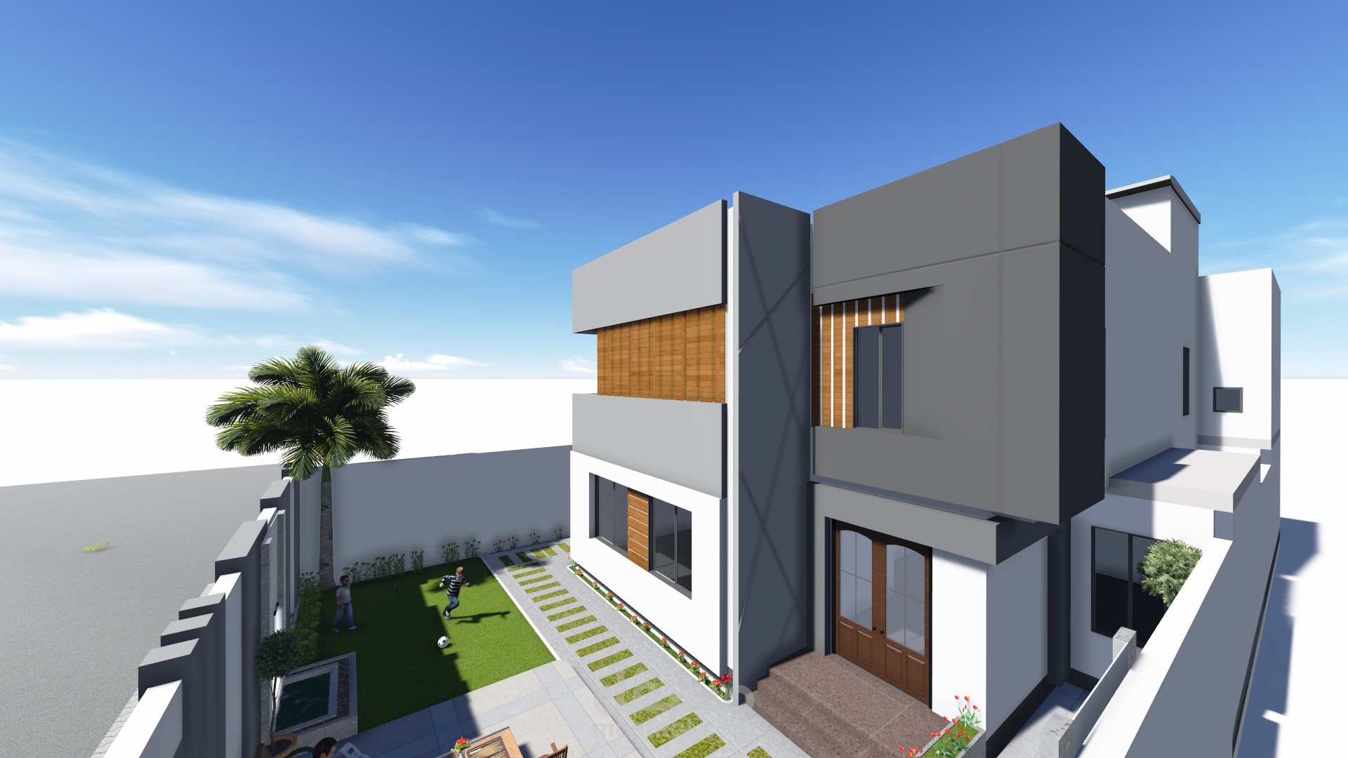 منظور خارجي ثلاثي الابعاد بنمط مودرن بسيط وجميل وغير مكلف وقابل للتنفيذ
