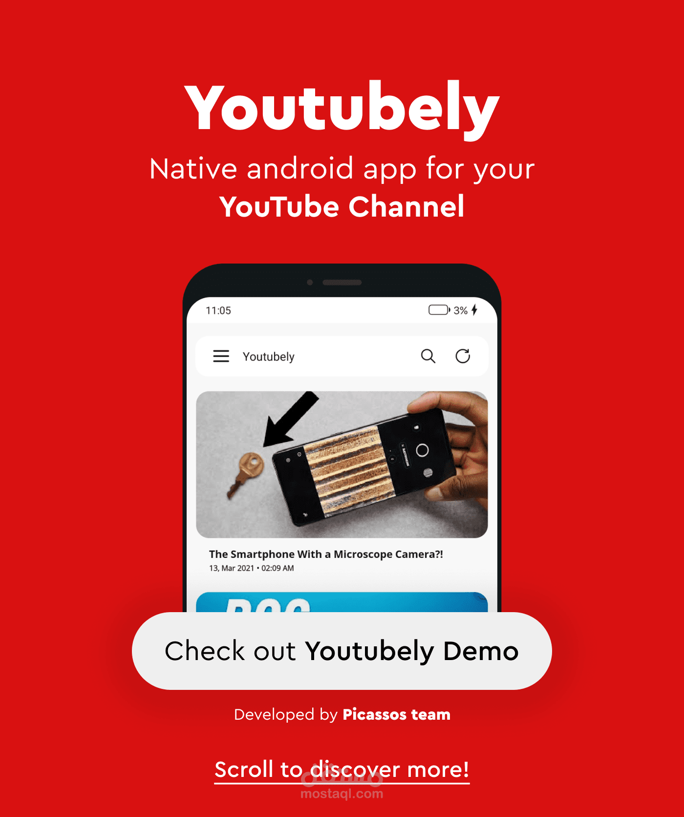 يوتيوبلي هو تطبيق قناه اليوتيوب الخاصه بك. تصميم جديد وملائم لقناه أحترافيه