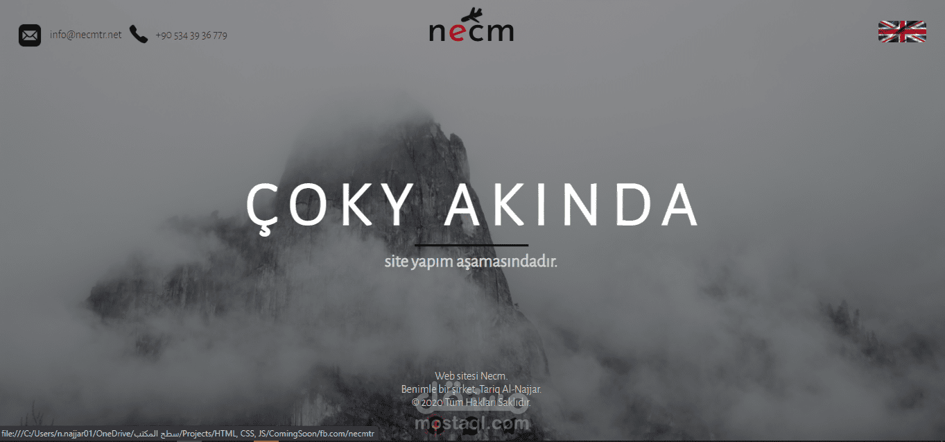 صفحة Coming Soon لاحدى الشركات باللغتين العربية والتركية
