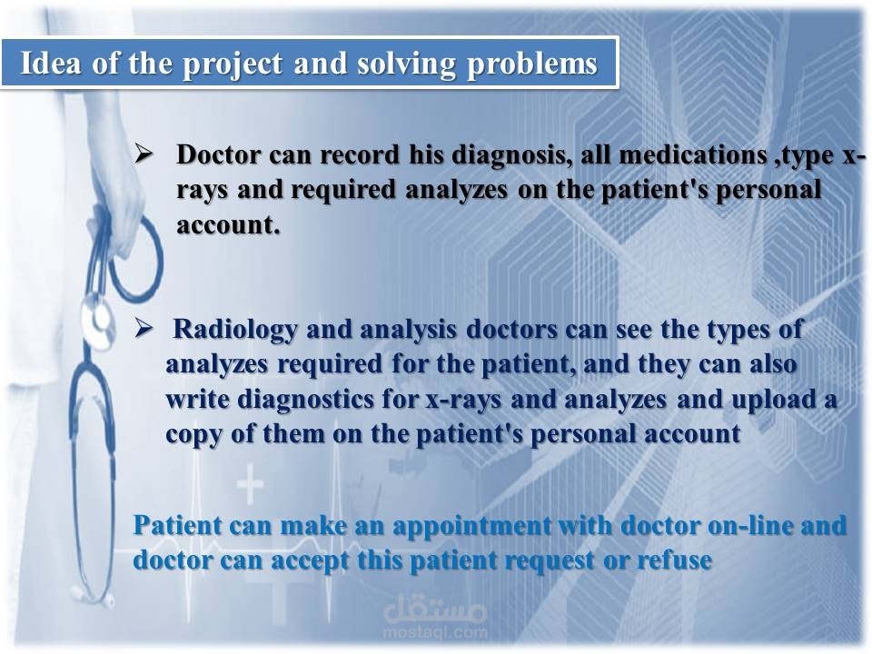 عمل بوربوينت لتقديم فكرة مشروع موقع لمنظمة طبية متكاملة
