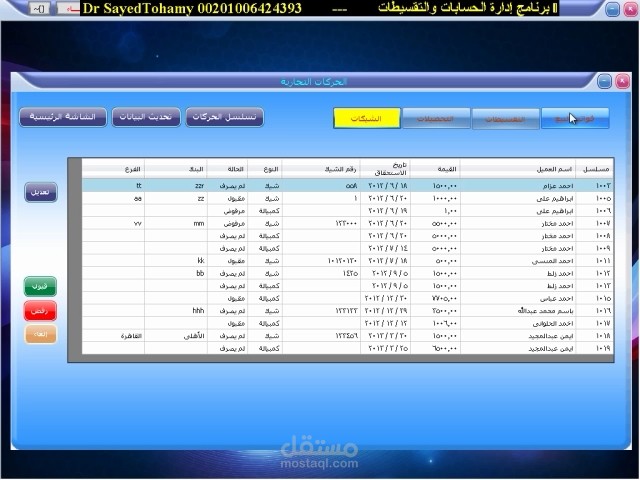 كذلك يحتوى على حركات البيع، والتحصيلات، والشيكات، وصلاحيات المستخدمين