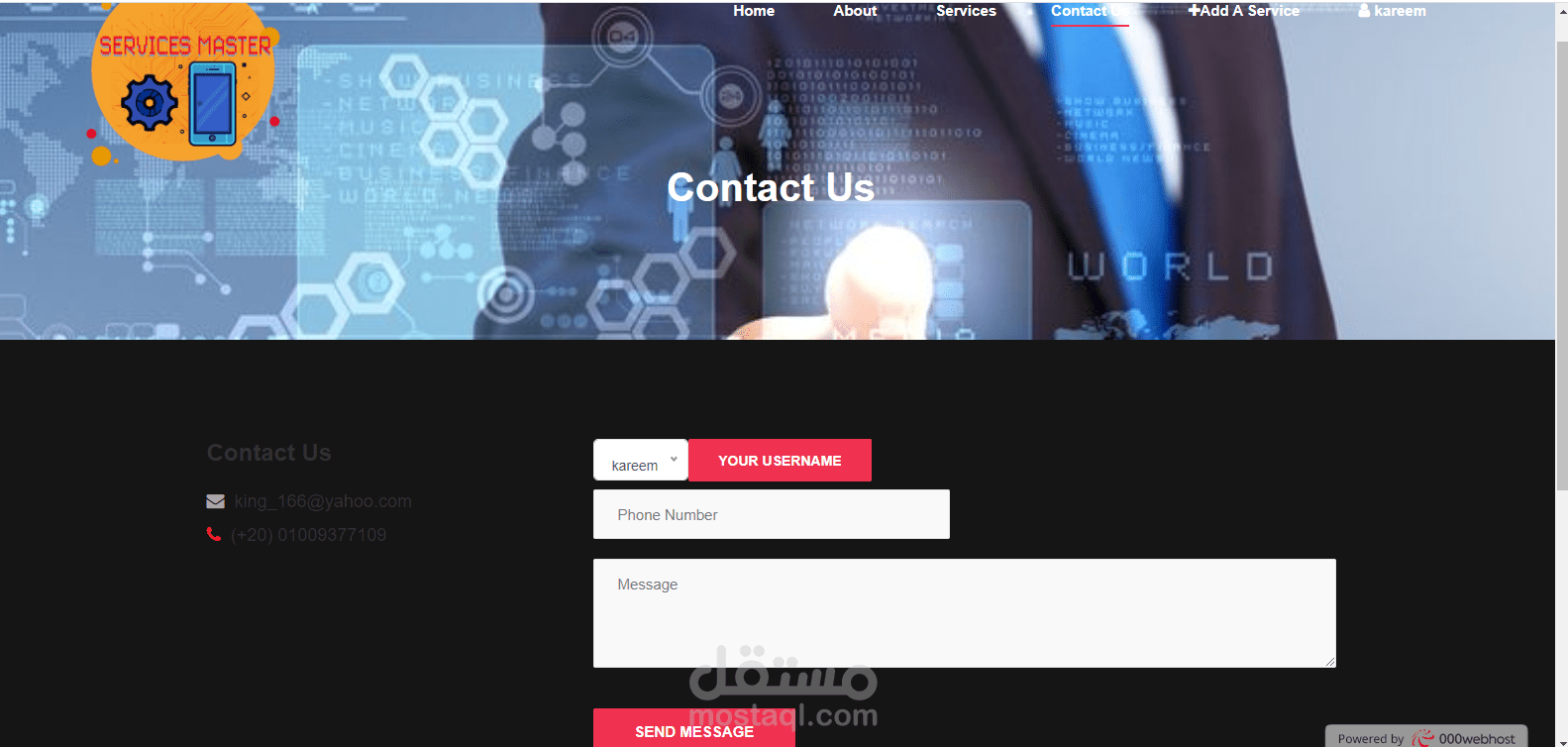 موقع يوفر للعامل/ المستخدم اضافة عمله او مهاراته الخاصة بعد ان يقوم بانشاء حساب على الموقع واضافة خدمتة ثم يتم التأكيد على الخدمة من خلال صفحة المدير اولاً والتأكد من صحة البيانات ثم ظهور الخدمة فى الموقع