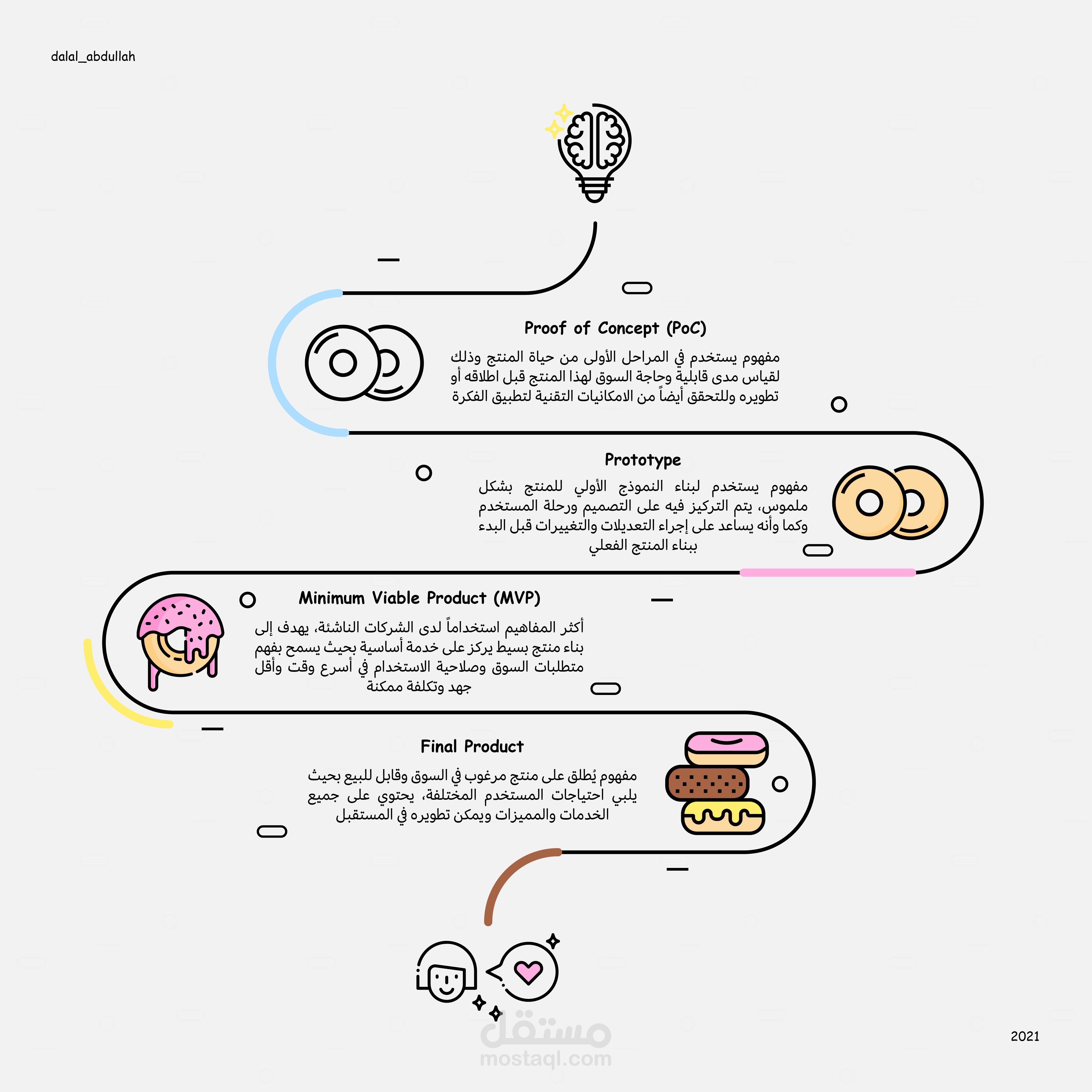 بوستر لتوضيح أهم المصطلحات في دورة حياة المنتج تم تصميمه باستخدام برنامج الالستريتور