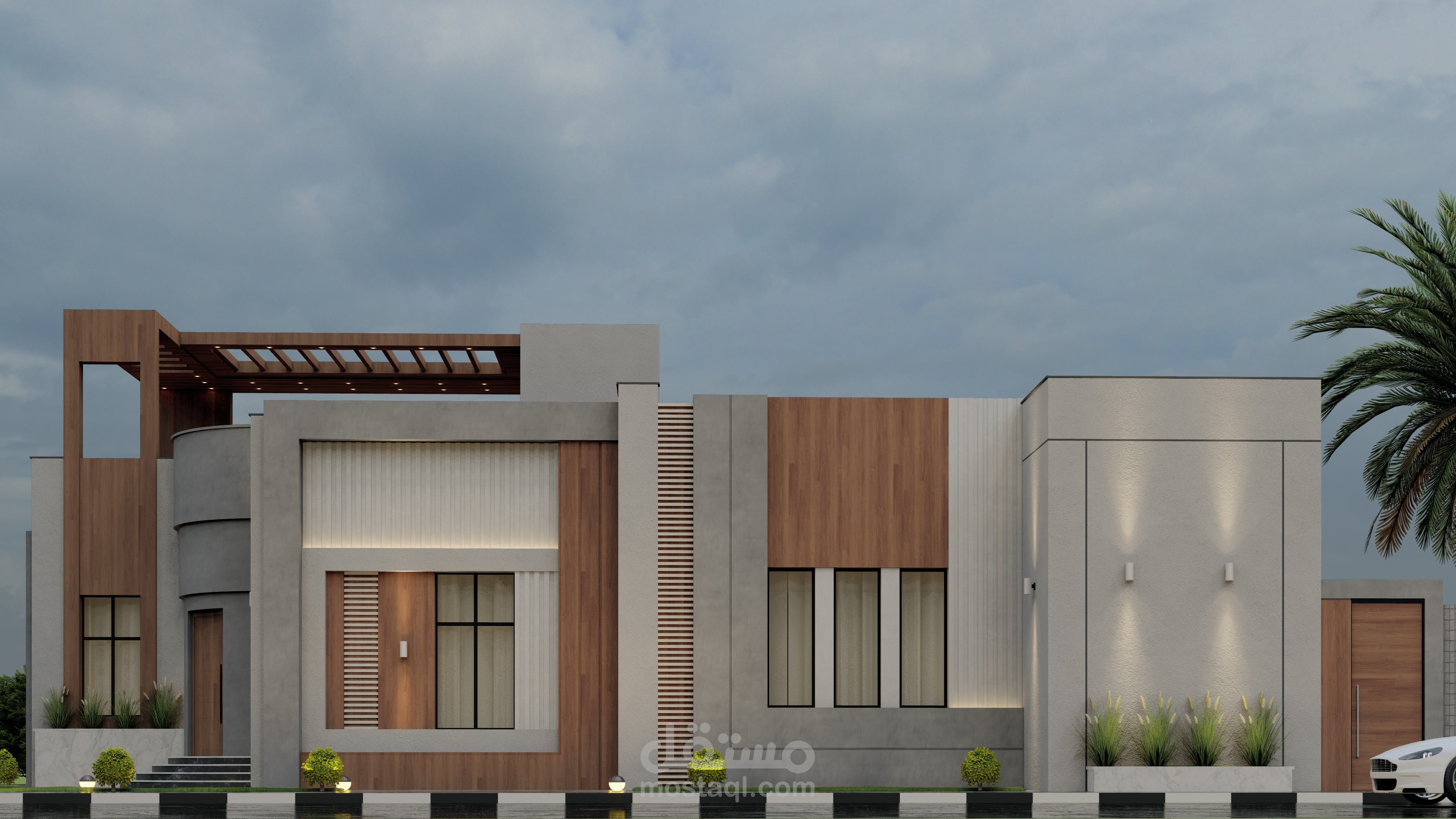 تصميم واجهة فيلا و سور على الطراز الحديث