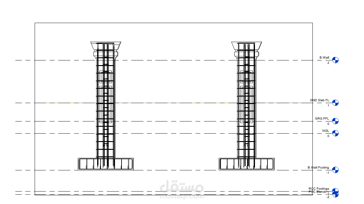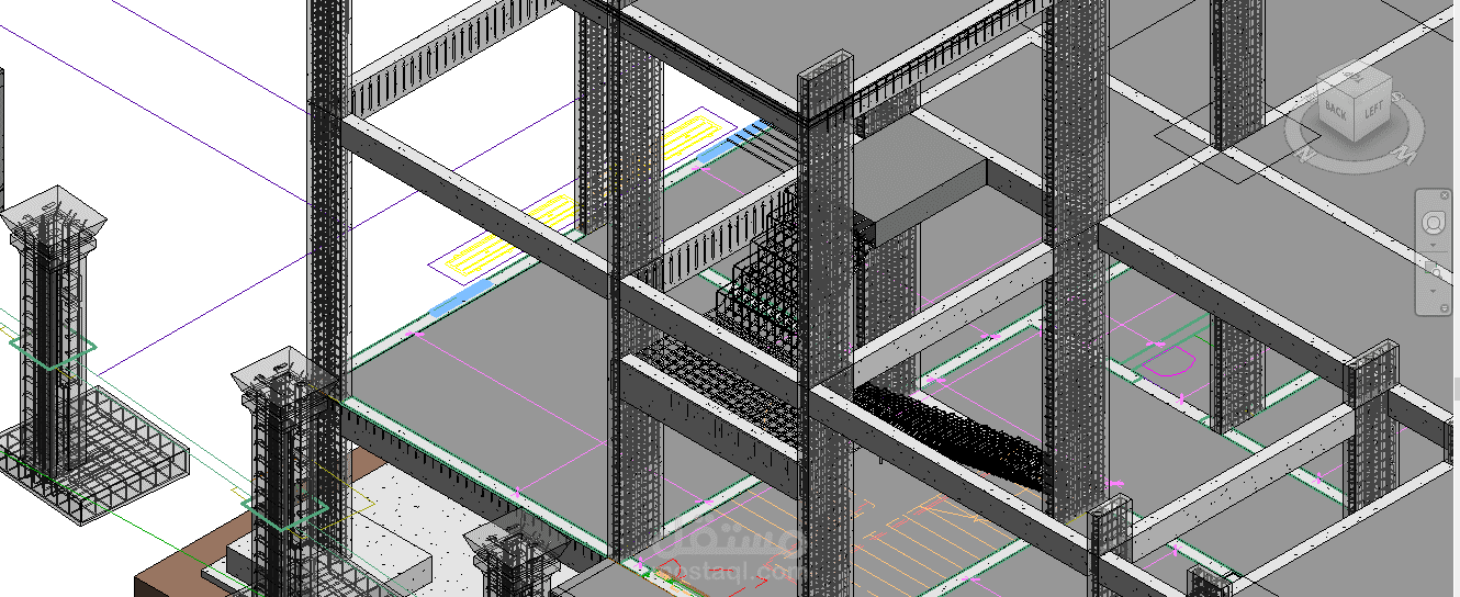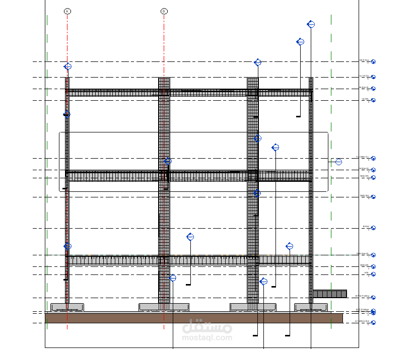 تم رسم المقاطع و تفريد حديد التسليح باستخدام REVIT