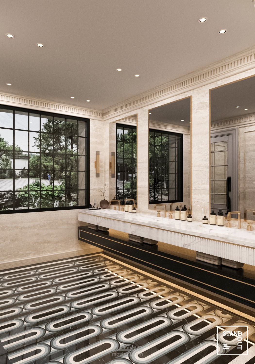 النمط الاساسي New Classic مع لمسات فخامة وعناصر Modern للحصول عل نتيجة تتناسب مع طلب العميل