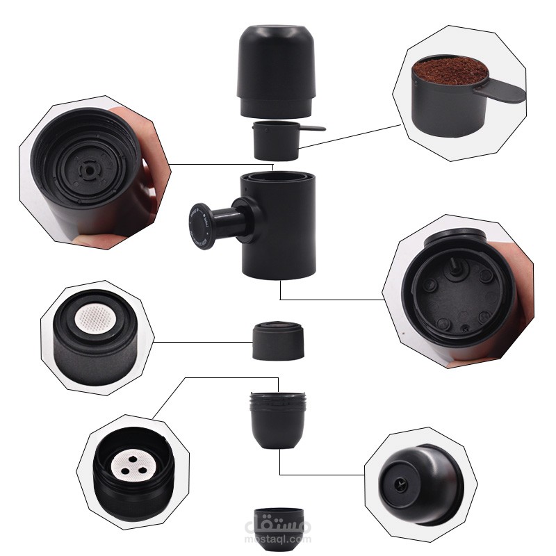 Mini espresso has been designed to be a small, light and versatile handheld espresso machine, It’s simple and intuitive to operate, Addground coffee to the filter basket with the help of the integrated scoop, Apply slight pressure to level the grind, Add hot water into the water tank Finally, unlock the piston from its travel position and after a few pushes, extraction pressure is achieved and a rich espresso shot is extracted. Clean the cup and the coffee adapter compartments under running water after each use. The water tank only needs to be dried with a cloth. Do NOT place Minipresso in the dishwasher Do not pour water into the orange area to avoid seepage when pressing Length: 175mm Average pressure: 8 BARS Shot size: up to 50ml Water capacity: 70ml Ground coffee capacity: 7g Other:built-in espresso cup and scoop Minipresso is 100% BPA free Clean the cup and the coffee adapter compartments under running water after each use. The water tank only needs to be dried with a cloth. Do NOT place Minipresso in the dishwasher Do not pour water into the orange area to avoid seepage when pressing تم تصميم ماكينة الاسبريسو لتكون محمولة وخفيفة ومتعددة الاستخدامات ،عملية بسيطة وسهلة الاستخدام ، إضافة قهوة إلى عبوة الفلتر بواسطة المعلقه المخصصه تطبيق ضغط خفيف لتسوية الطحن ، إضافة الماء الساخن إلى أخيرًا ، قم بإلغاء قفل المكبس من موضع المخصص وبعد بضع دفعات يتم تحقيق ضغط الاستخراج واستخراج لقطة إسبرسو غنية. قم بتنظيف المقصورات ومحول القهوة تحت الماء الجاري بعد كل استخدام. يحتاج خزان الماء فقط إلى التجفيف بقطعة قماش. لا تضع الماكينه في غسالة الصحون لا تصب الماء في المنطقة البرتقالية لتجنب التسرب عند الضغط الطول: 175 ملم متوسط الضغط: 8 بار حجم النار: ما يصل إلى 50ML سعة المياه: 70 مل سعة البن المطحون: 7 جرام اّخر: كأس إسبرسو مدمج ومغرفة الماكينه 100 ٪ خالية من BPA السعر 1036 جنيه