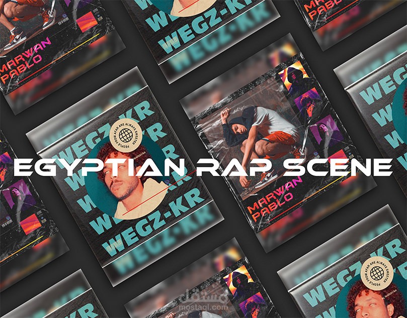 Design, custom typeface, and album artwork for the Egyptian rap scene. include by order; Marwan Pablo Wegz Abyusif MARWAN MOUSSA BATISTUTA Abo El Anwar Afroto