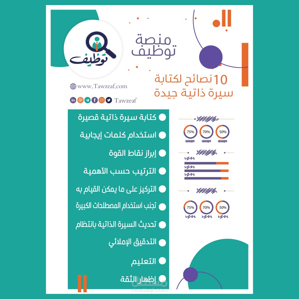 تصاميم انفوجرافيك قمت بتصميمها لموقع توظيف من الصفر دون الإستعانة بقوالب جاهزة