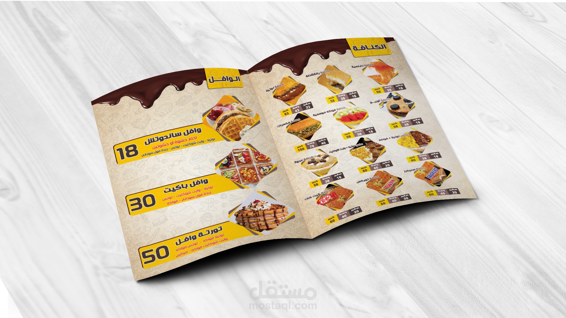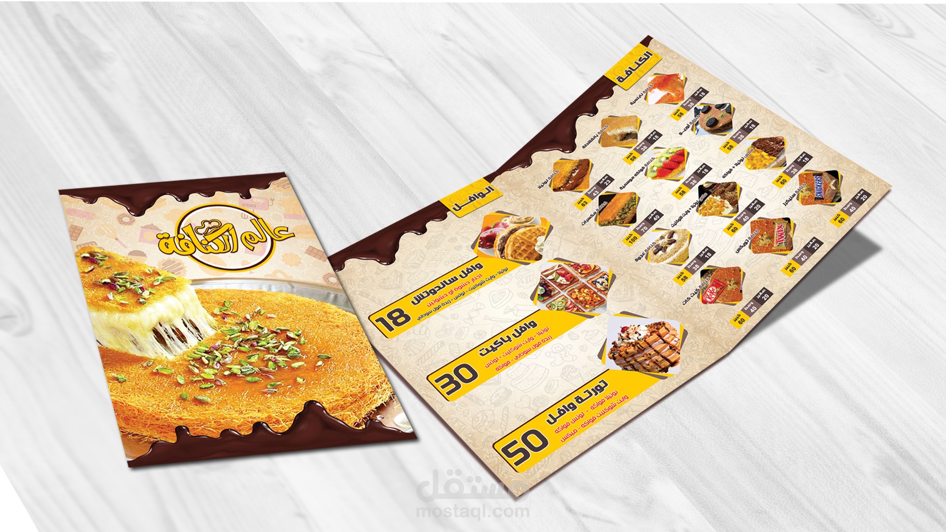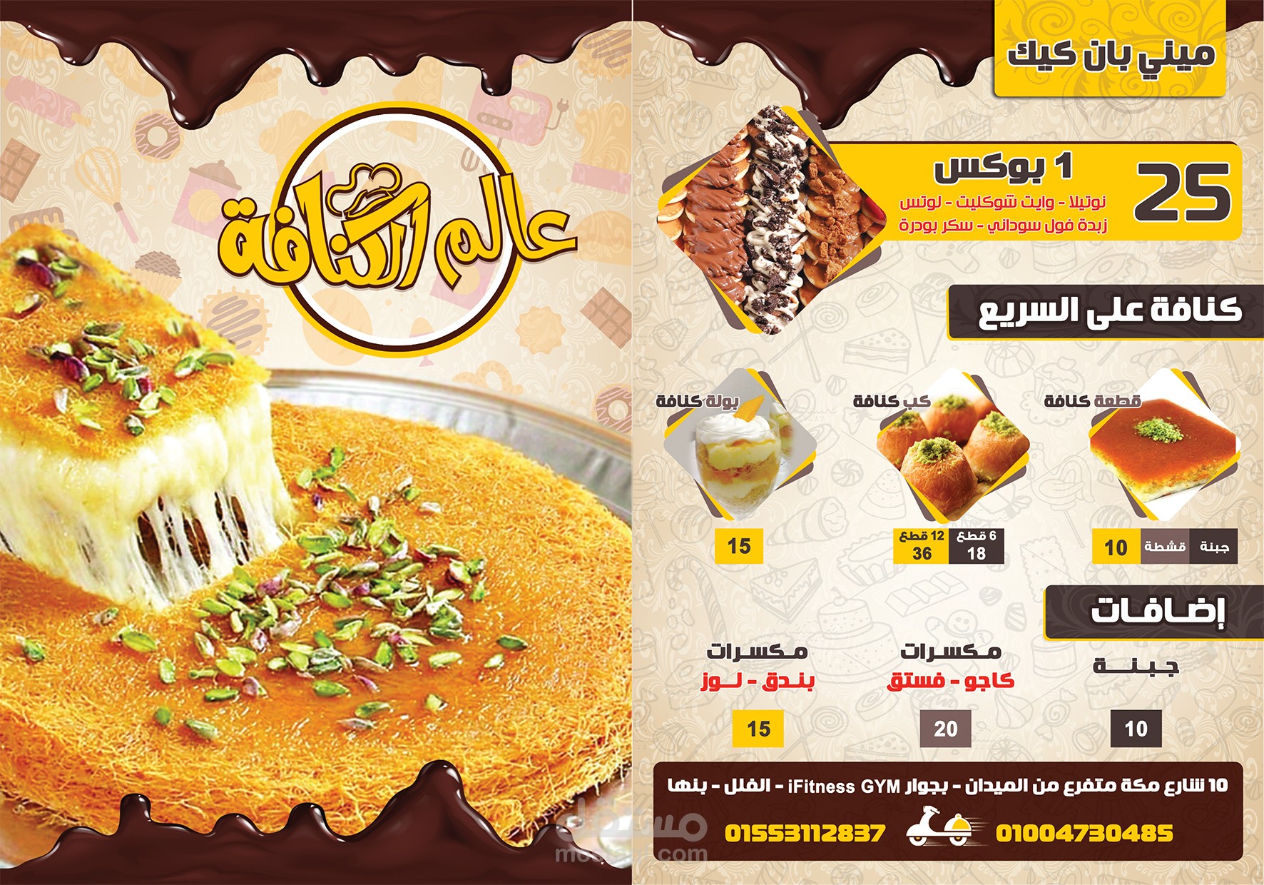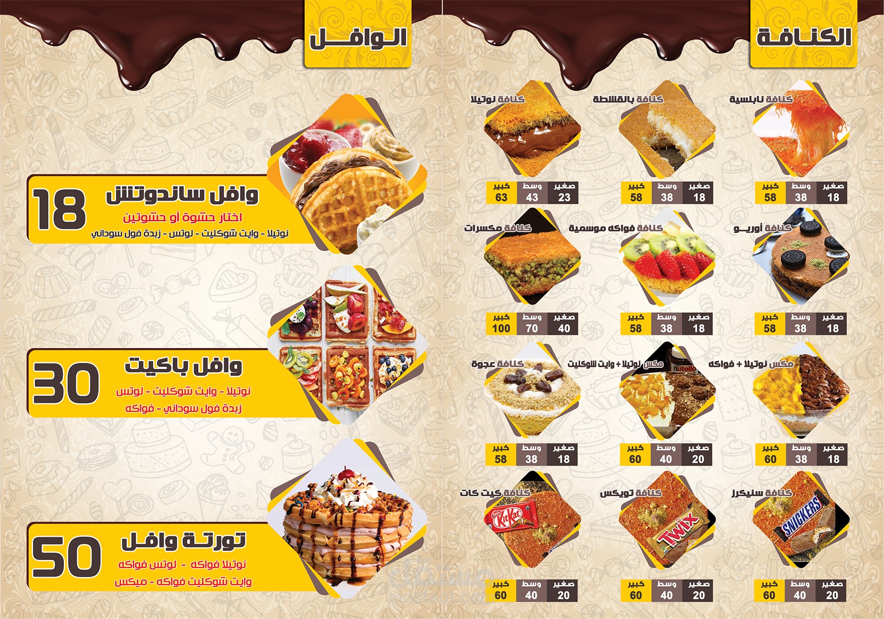 منيو لمحلات عالم الكنافة للحلويات