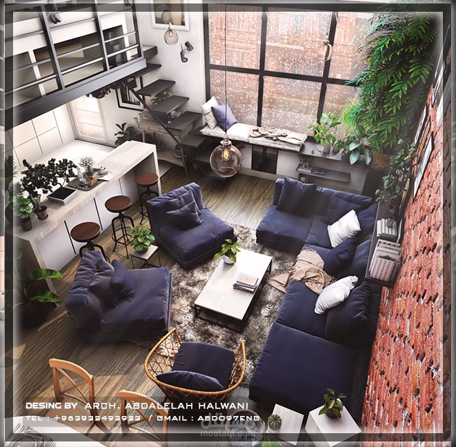 الفراغ عبارة عن غرفة معيشة دوبلكس