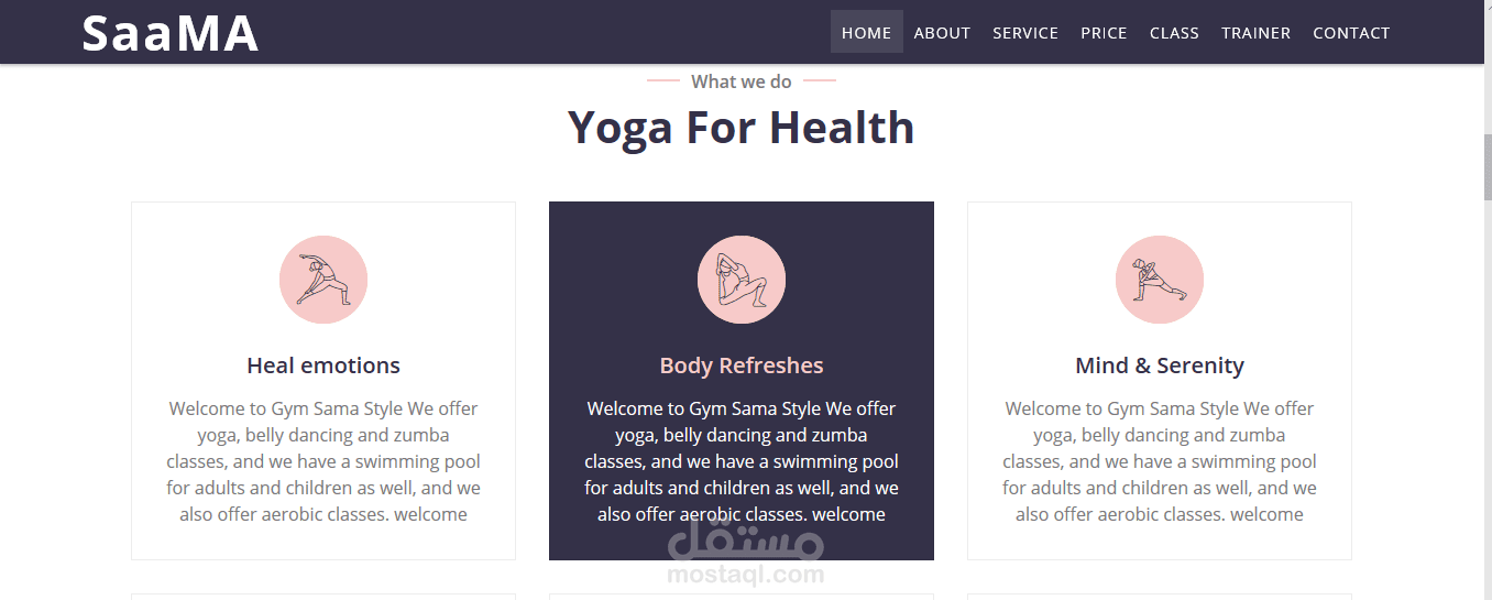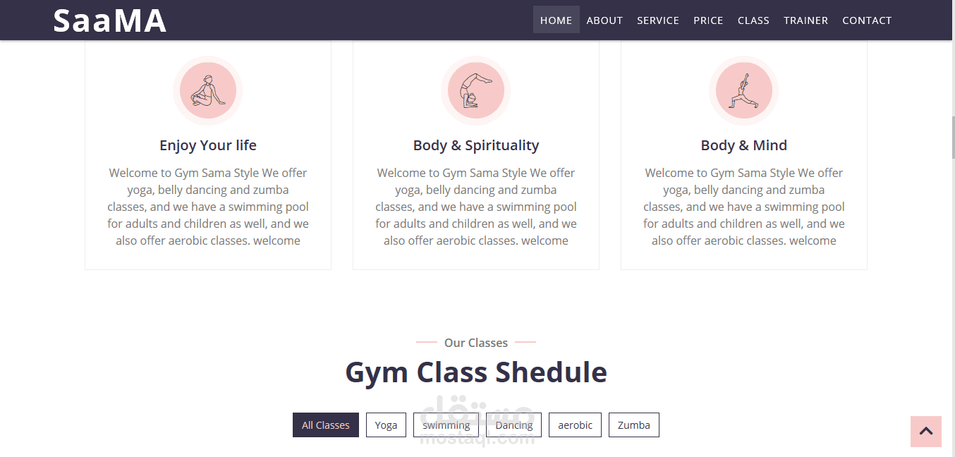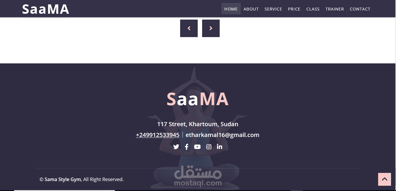 موقع إلكتروني لنادي رياضي، حيث يوفر معلومات حول الخدماتت التى يقدمها النادي و أوقات العمل و وسائل التواصل المختلفة و أسعار الخدمات و المدربين المتاحين، مع إمكانية الحجز و التسجيل عبر الموقع و دفع الرسوم.