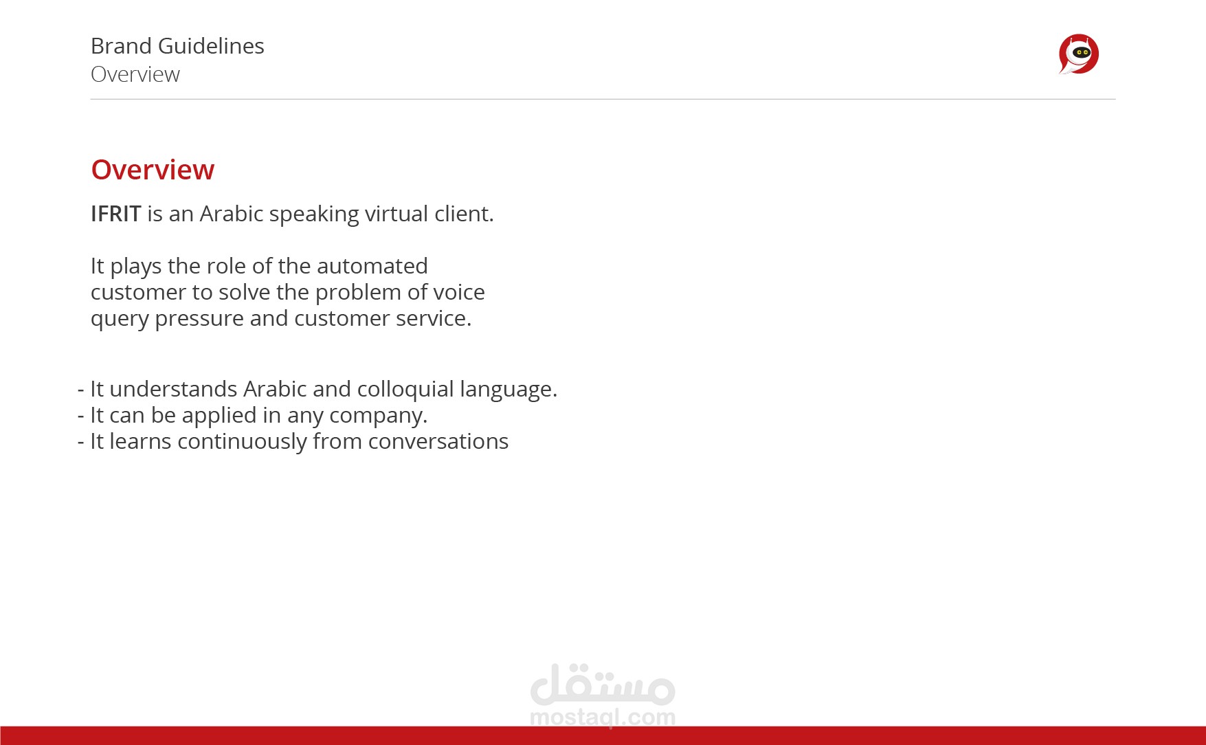 IFRIT is an Arabic speaking virtual client. It plays the role of the automated customer to solve the problem of voice query pressure and customer service.