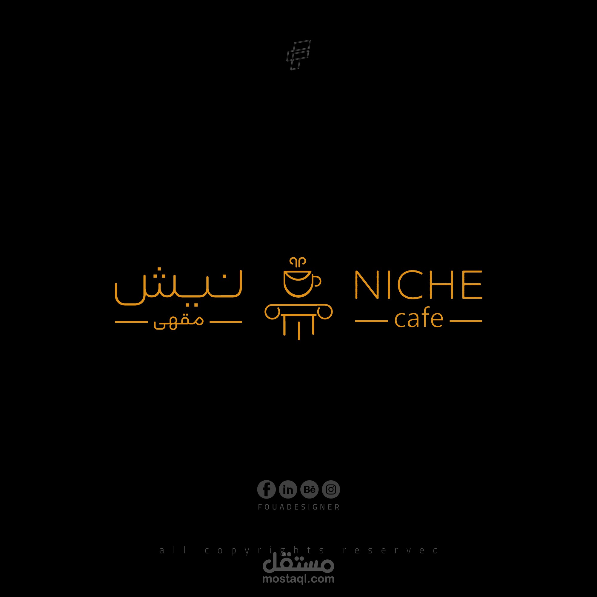 تصميم شعار مقهى نيش وتم تصميمه وفق اطر في انشاء الهويات البصرية وبشكل يعكس الفخامة والرقي .