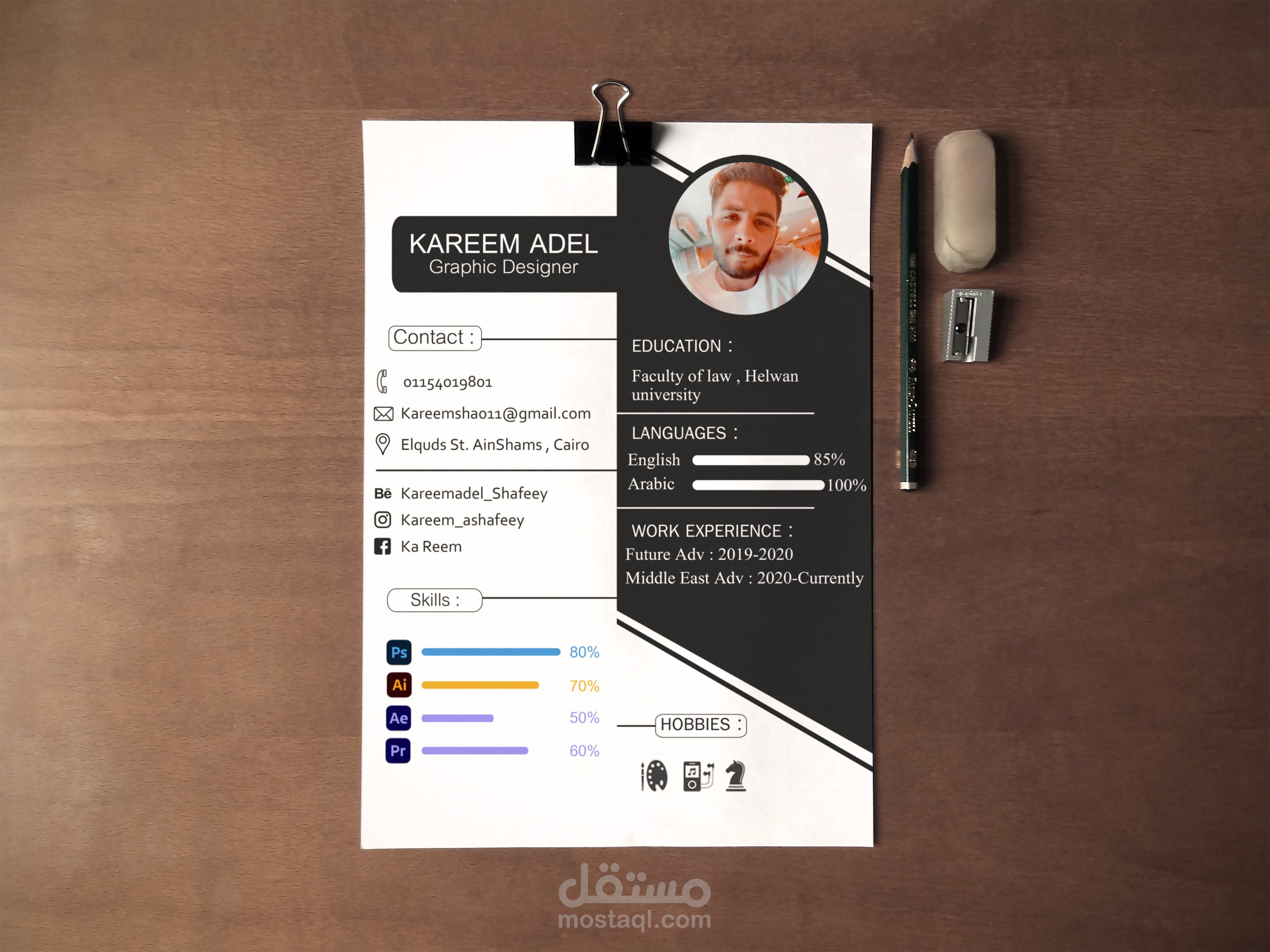 تصميم لسيرتي الذاتيه تم تنفيذة علي برنامج Adobe Photoshop