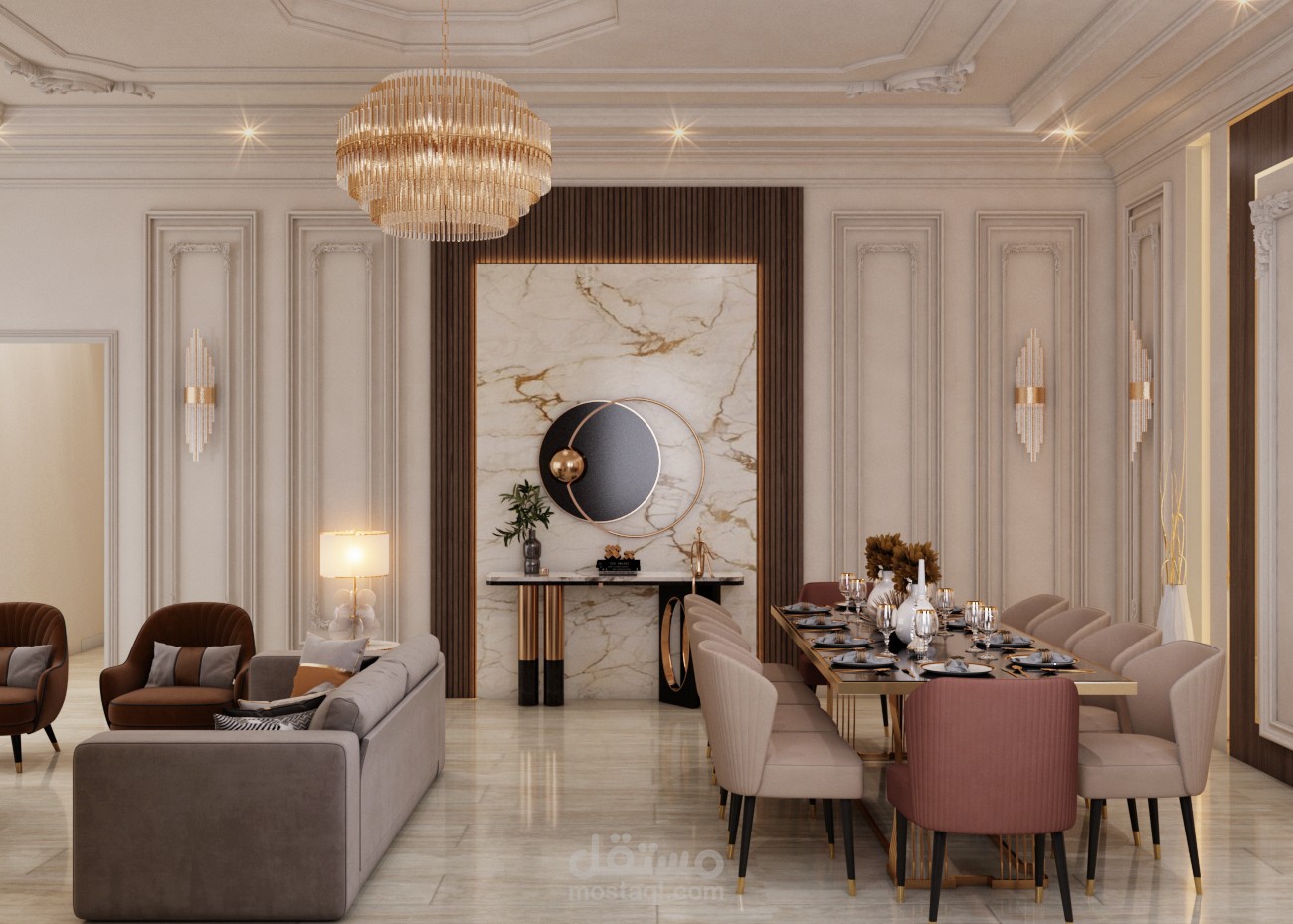 تم تصميم الصالة والمدخل على الطراز الحديث