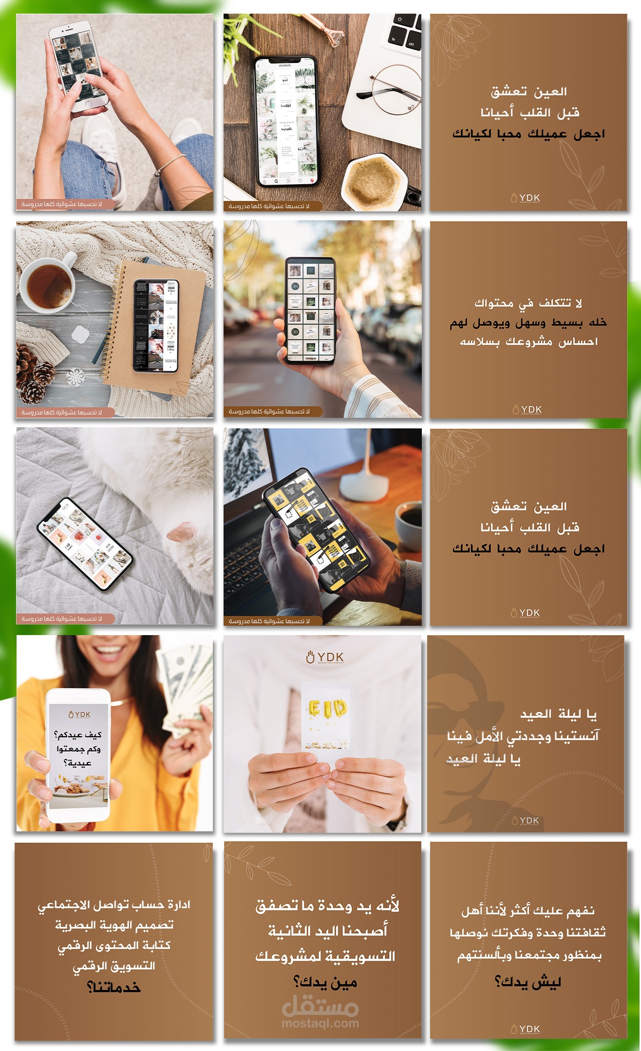 تصميم قالب خاص للانستجرام، يظهر جميع التصاميم بشكل مترابط وحسب نظام واحد