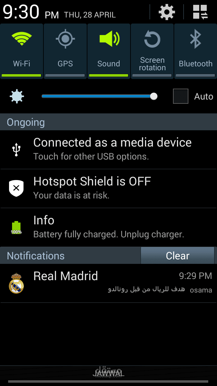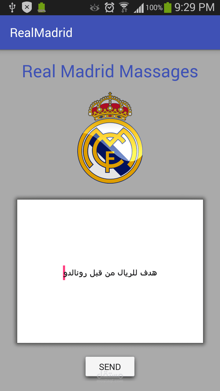 تطبيق اشعارات ريال مدريد يعمل على نظام الاندرويد بحيث يتم معرفة جميع احداث المباراة اثناء اللعب عن طريق اشعارات تصل لجوالك اولاً باول باستخدام تقنة GCM.