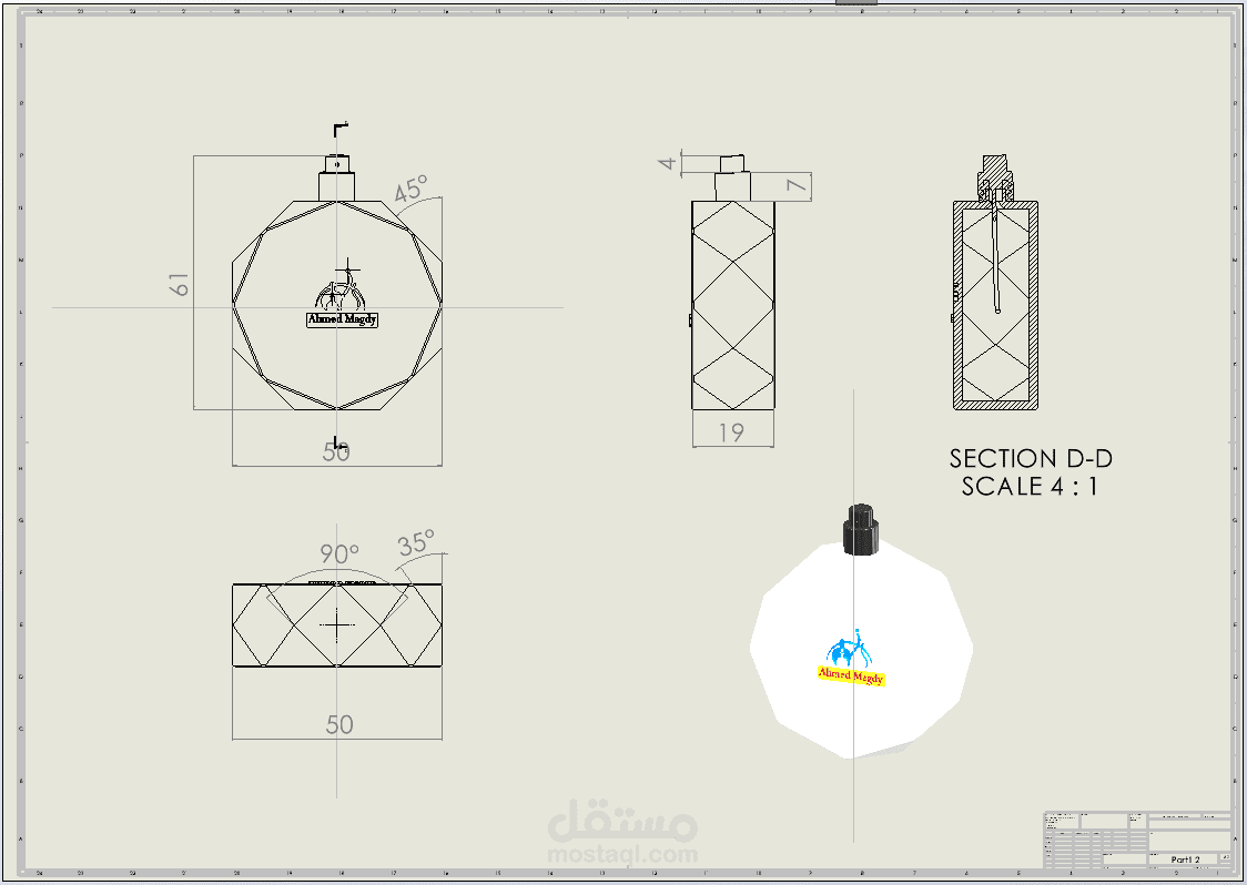تصميم ثلاثي الابعاد لزجاجة برفان , لارسالها للتصنيع و محكاة الشكل الجمالي