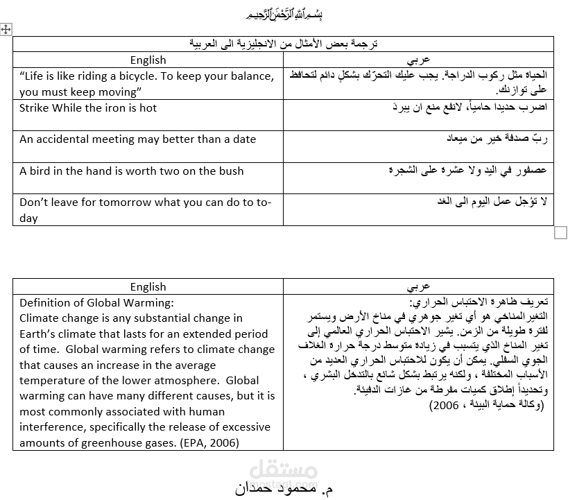 ترجمة الأمثال العربية والانجليزية