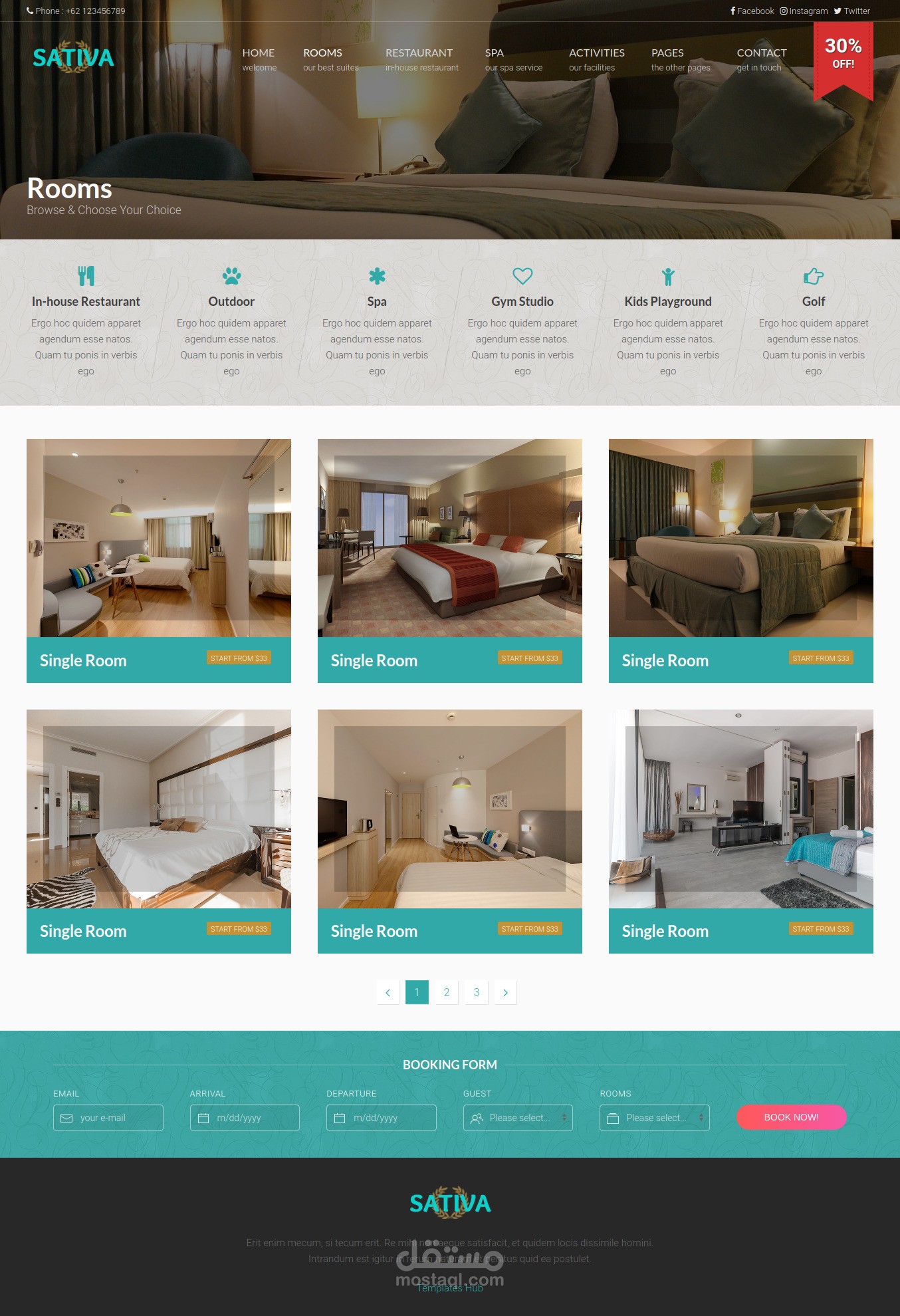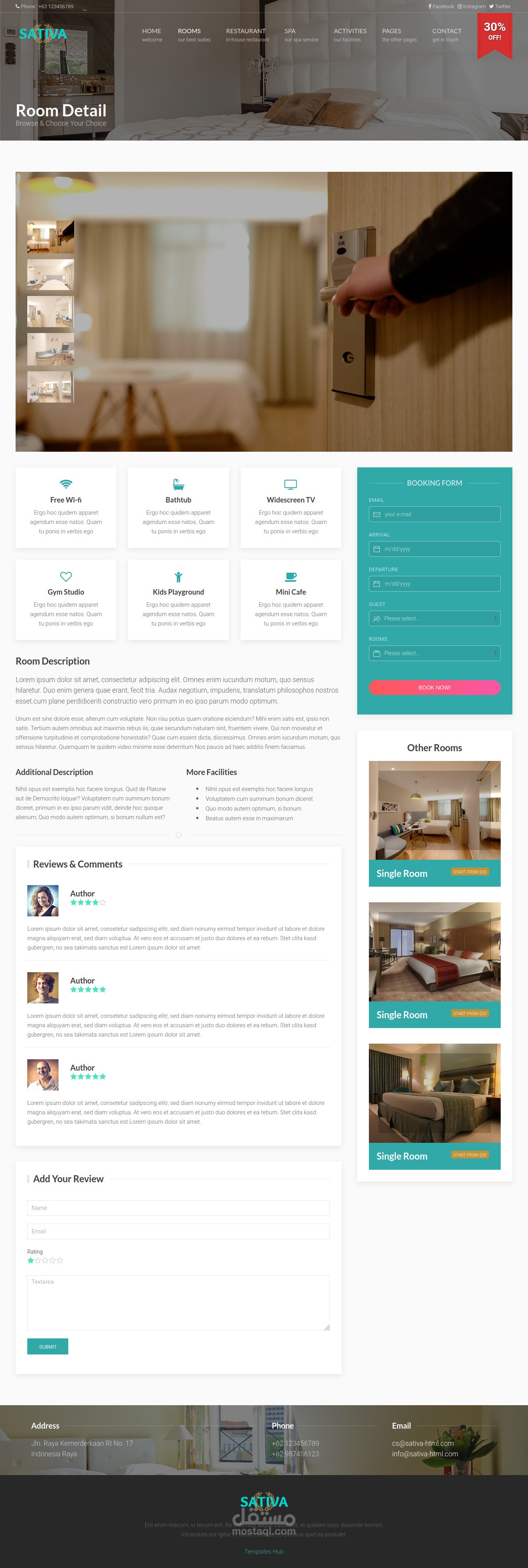 Modern Hotel Web Template To Preview and Booking rooms or Restaurants