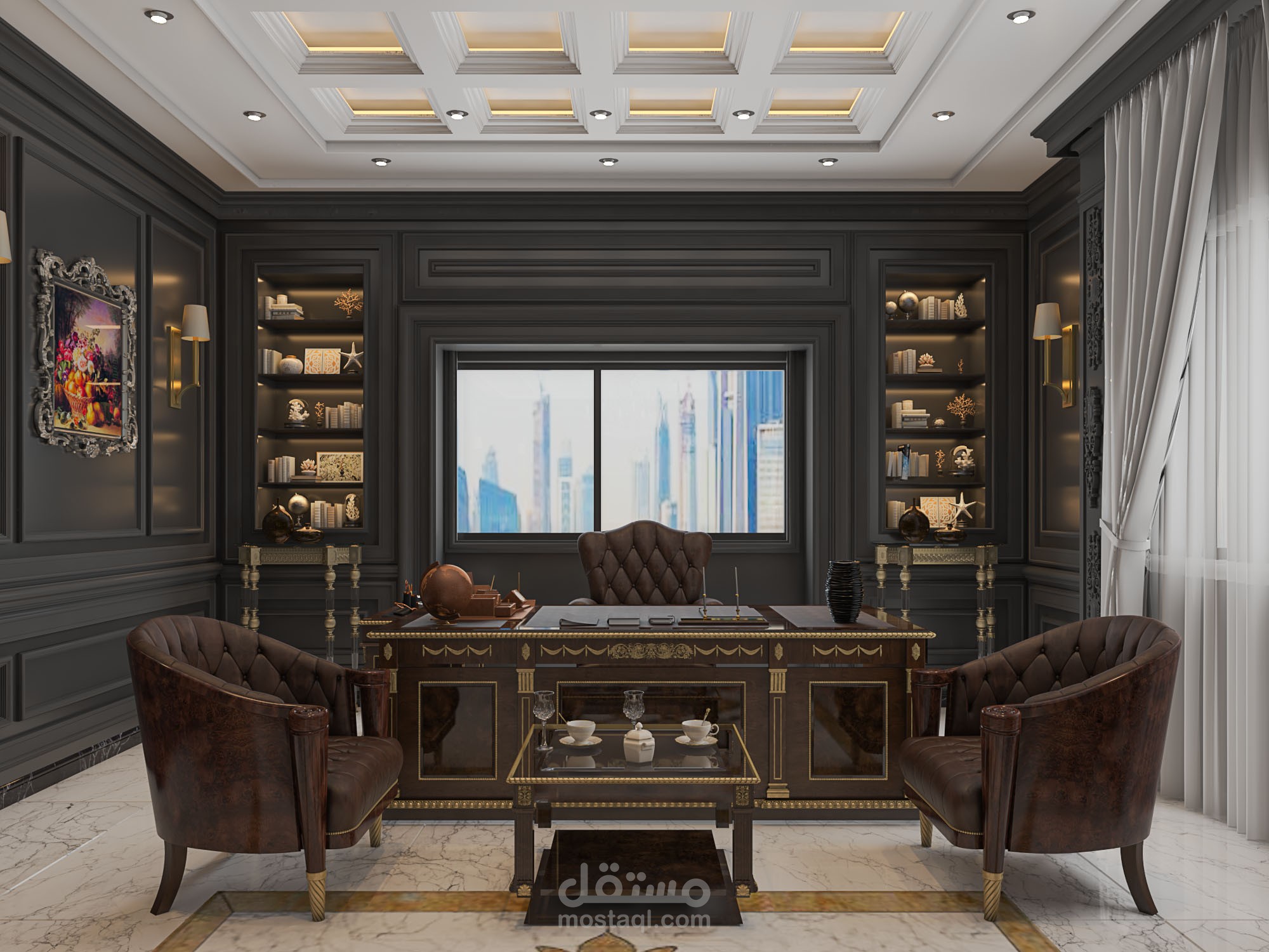 تصميم مكتب على الطراز الكلاسيكي في مدينة الكويت