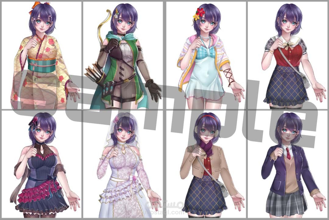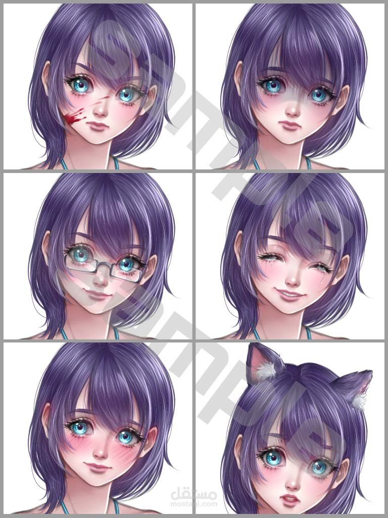 شخصية في ملف psd مع كامل محتوياتها من ملابس وتعابير وجه واضافات اخرى