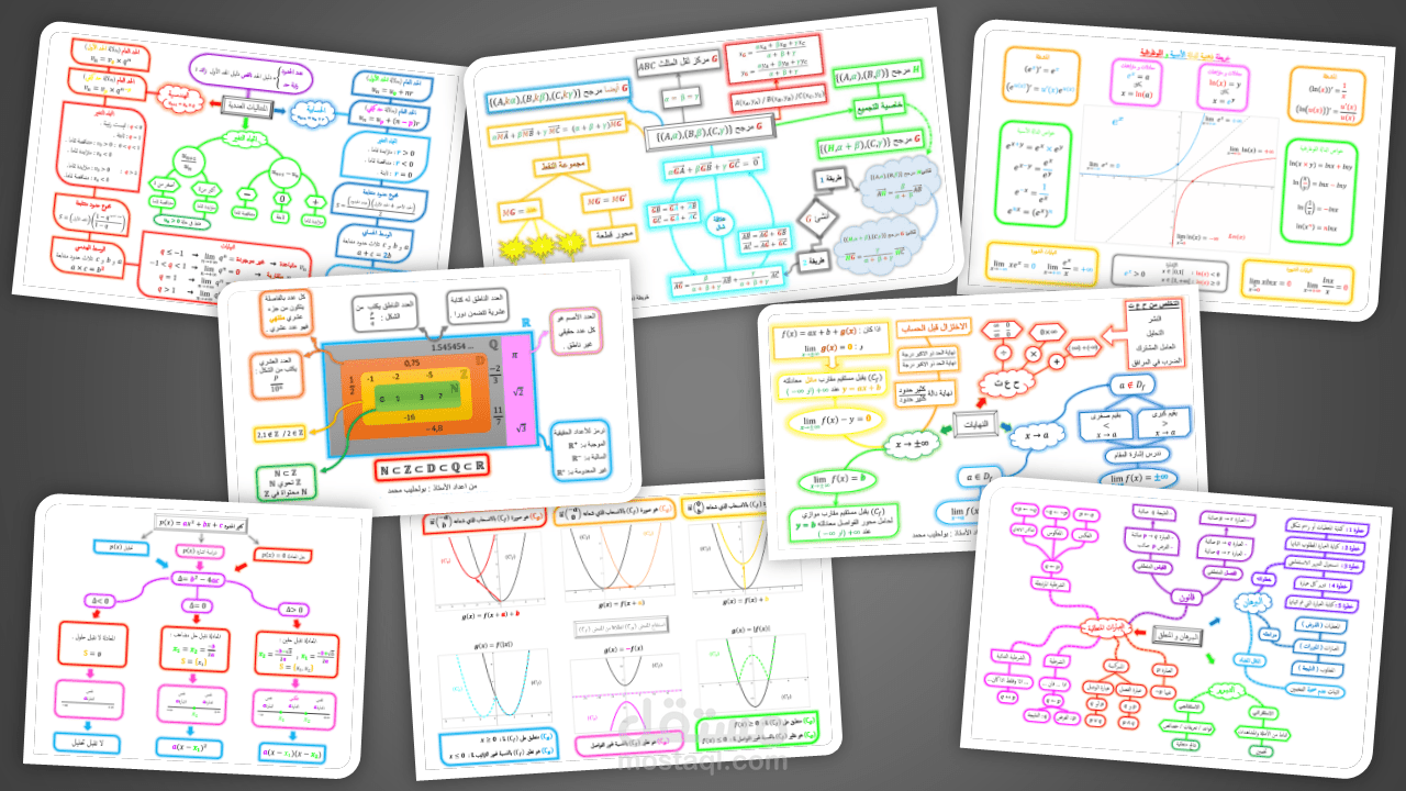 قمت بتلخيض دروس الرياضيات (سنة 1 و 2 و 3 الطور الثانوي ) الى خرائط ذهنية تساعد على الفهم الجيد و الربط بين المعلومات و سرعة حفظ القوانين الرياضية