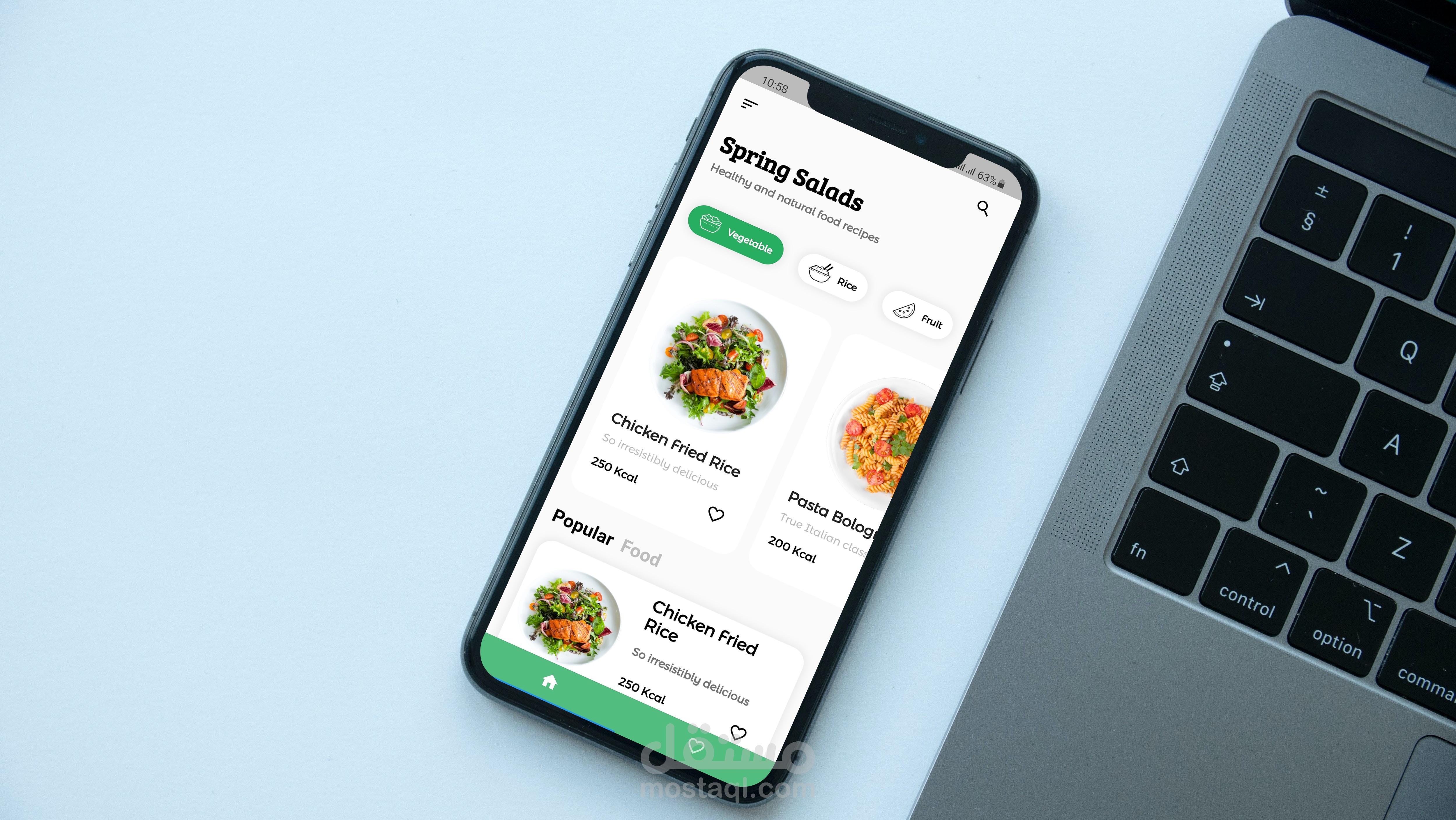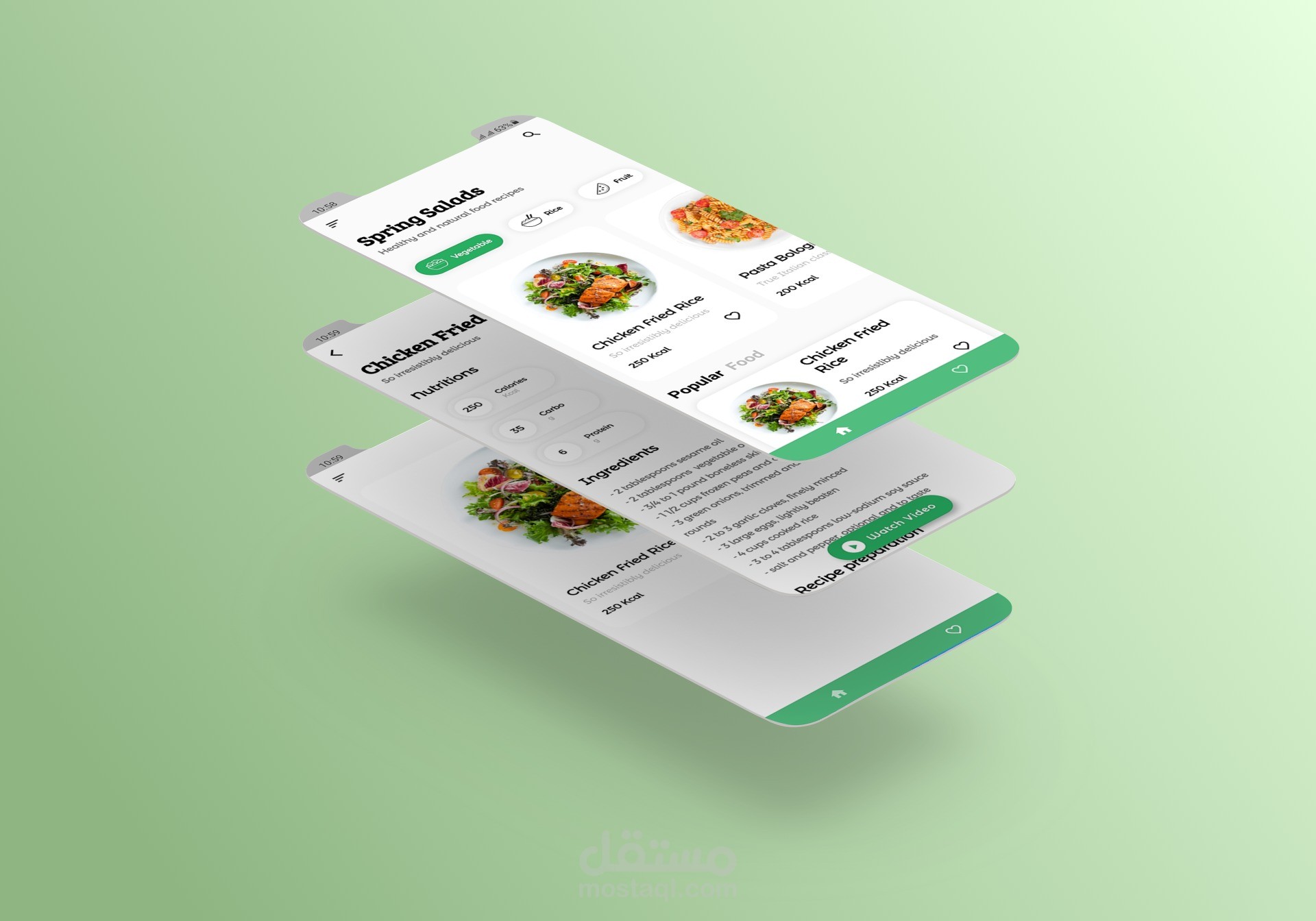 تطبيق وصفات طعام يعرض مجموعة من الوصفات بالتفاصيل ويمكنك مشاهدة الفيديو لهذه الوصفة عند الضغط على زر مشاهدة الفيديو ويسمح لك بالبحث عن وصفات معينة والقدرة على حفظ الوصفات المفضلة على صفحة المفضلة