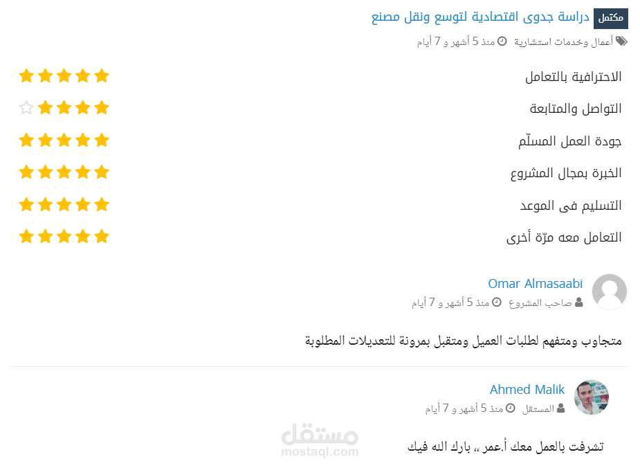 قدمت العديد من دراسات الجدوى الصناعية لهيئات وشركات كبري بالوطن العربي لأغراض التمويل والاستثمار والتوسعات