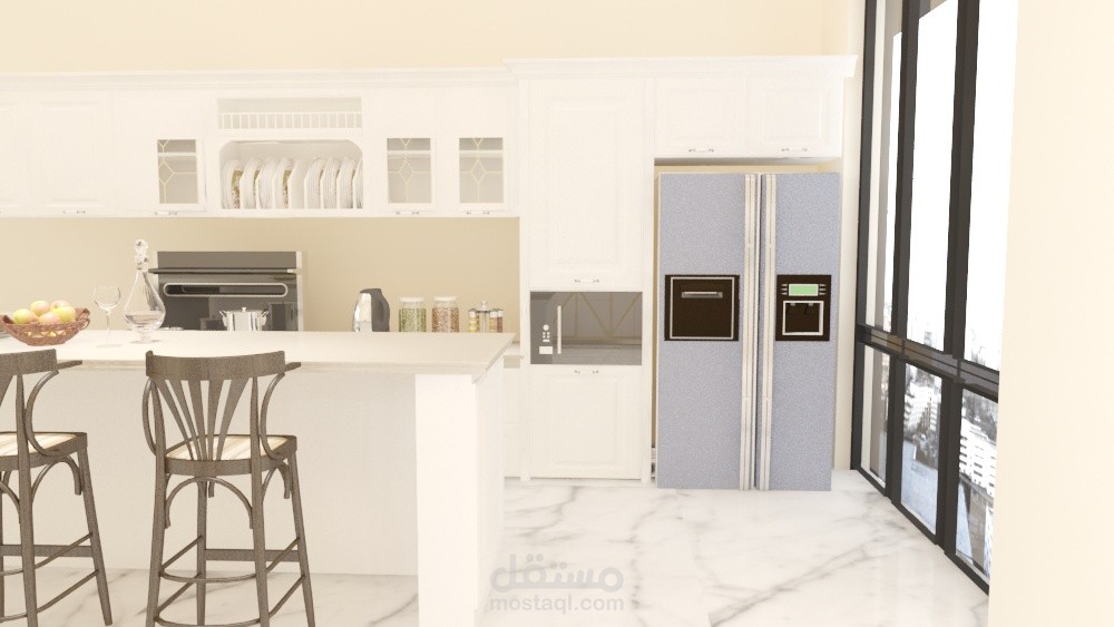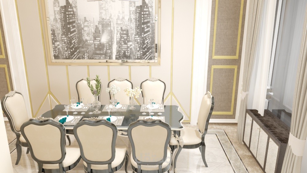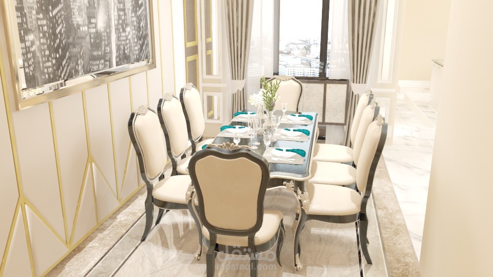 تصميم داخلى لغرفه سفره ومطبخ مفتوح كلاسيك