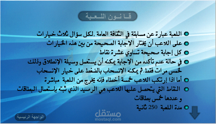 اللعبة من فئة المسابقات الفكرية تحتوي على أكثر من ألفي سؤال ثقافي في عدة مجالات كالعلوم و التكنلوجيا و الاسلاميات و التاريخ