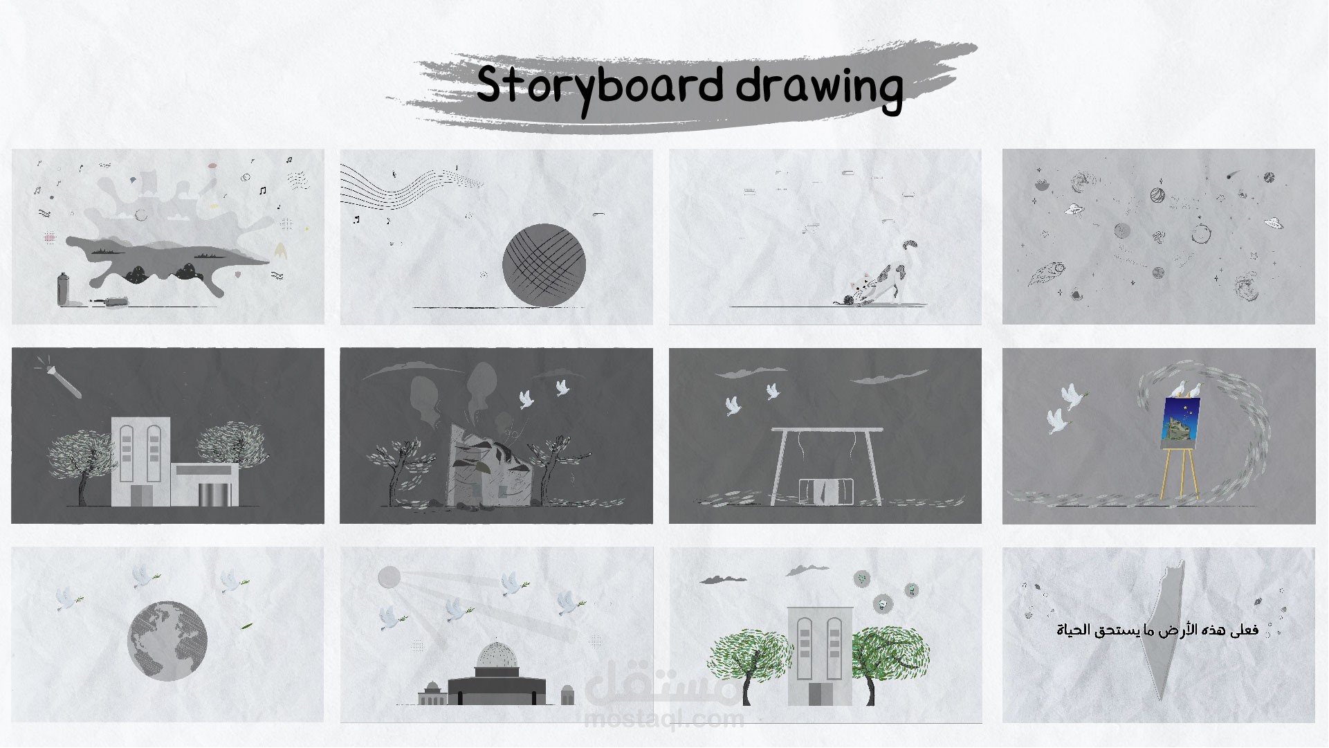 الفكرة تكونت من تجربة تحولت إلى واقع مقروء بصري , من كتابة السيناريو ورسم المشاهد بأسلوب يتناسب مع الفكرة بطريقة مميزة وخيالية