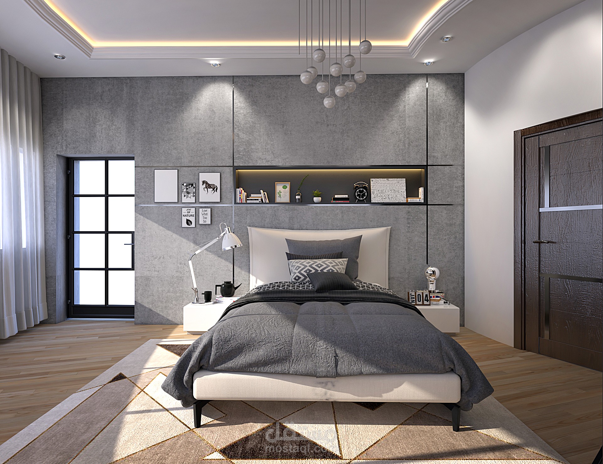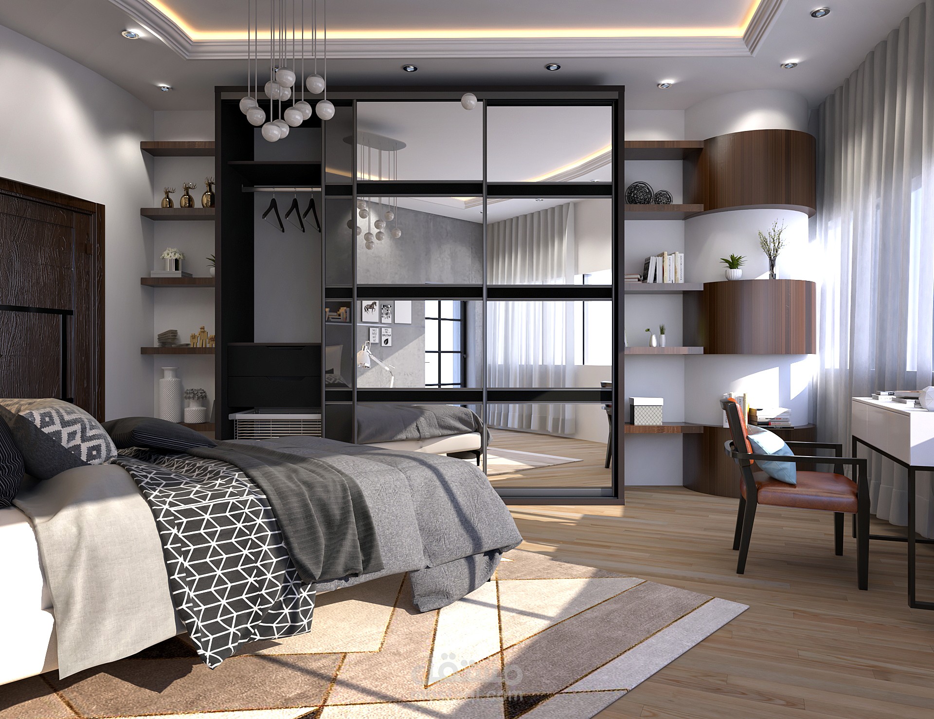 تصميم بسيط و معاصر لغرفة نوم في برج بمدينة دمشق