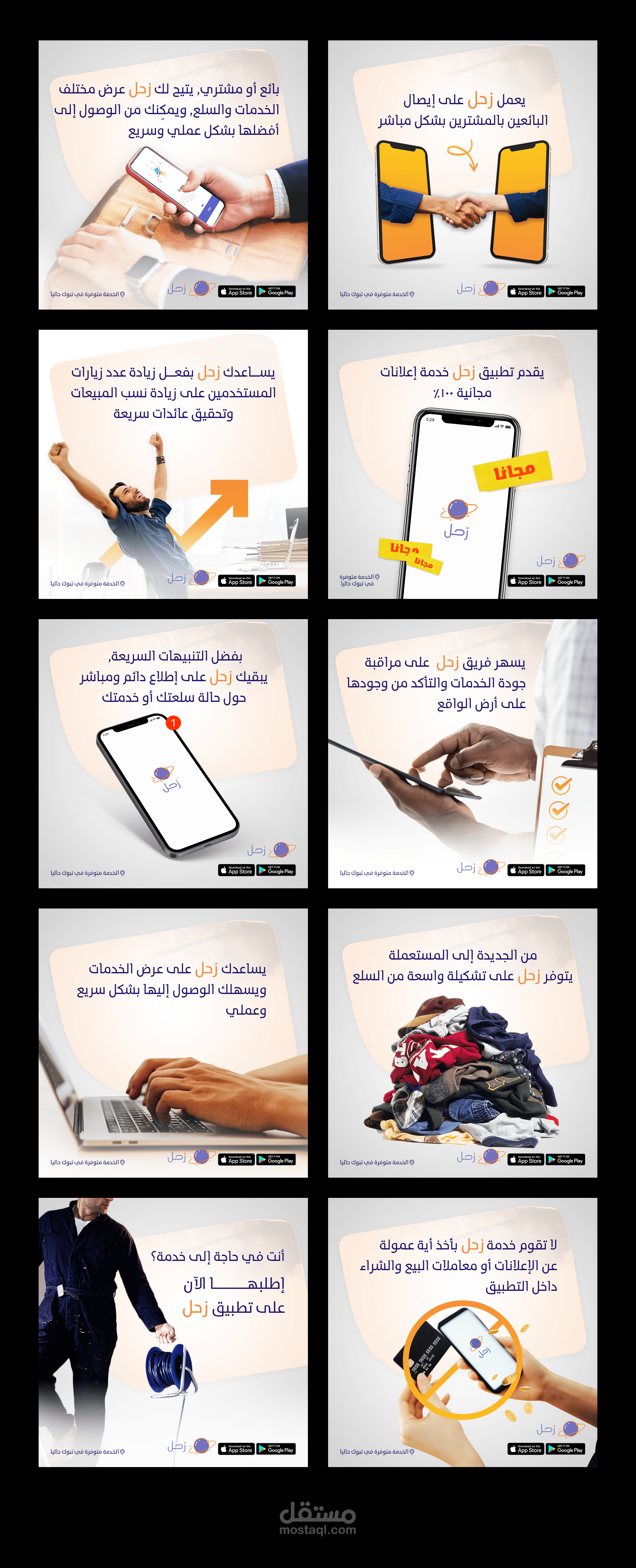 تصاميم إعلانية لـ تطبيق زحل للسلع والخدمات على منصتي فايسبوك وإنستغرام.