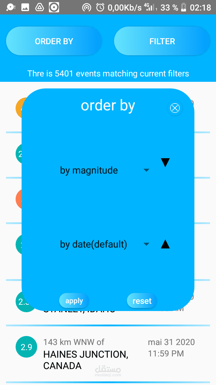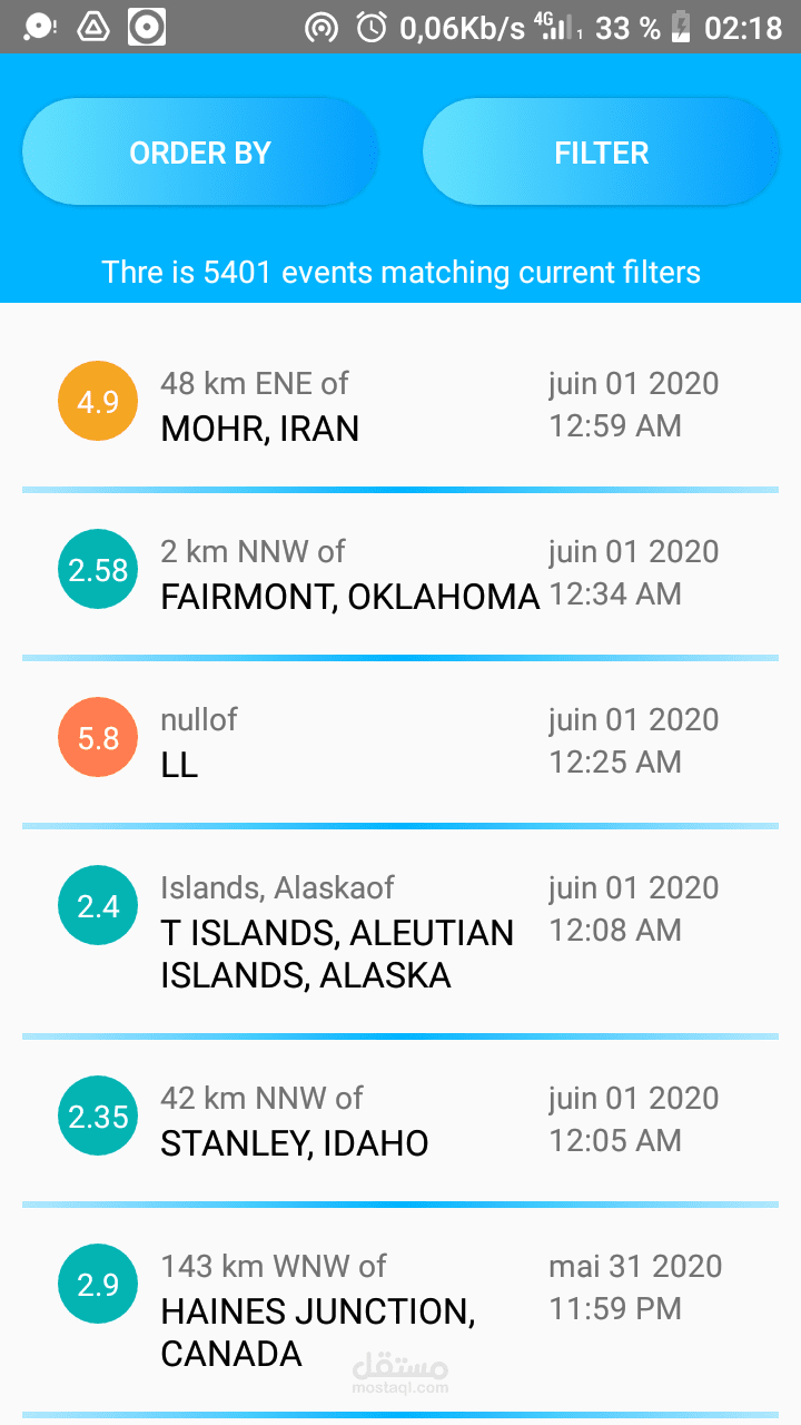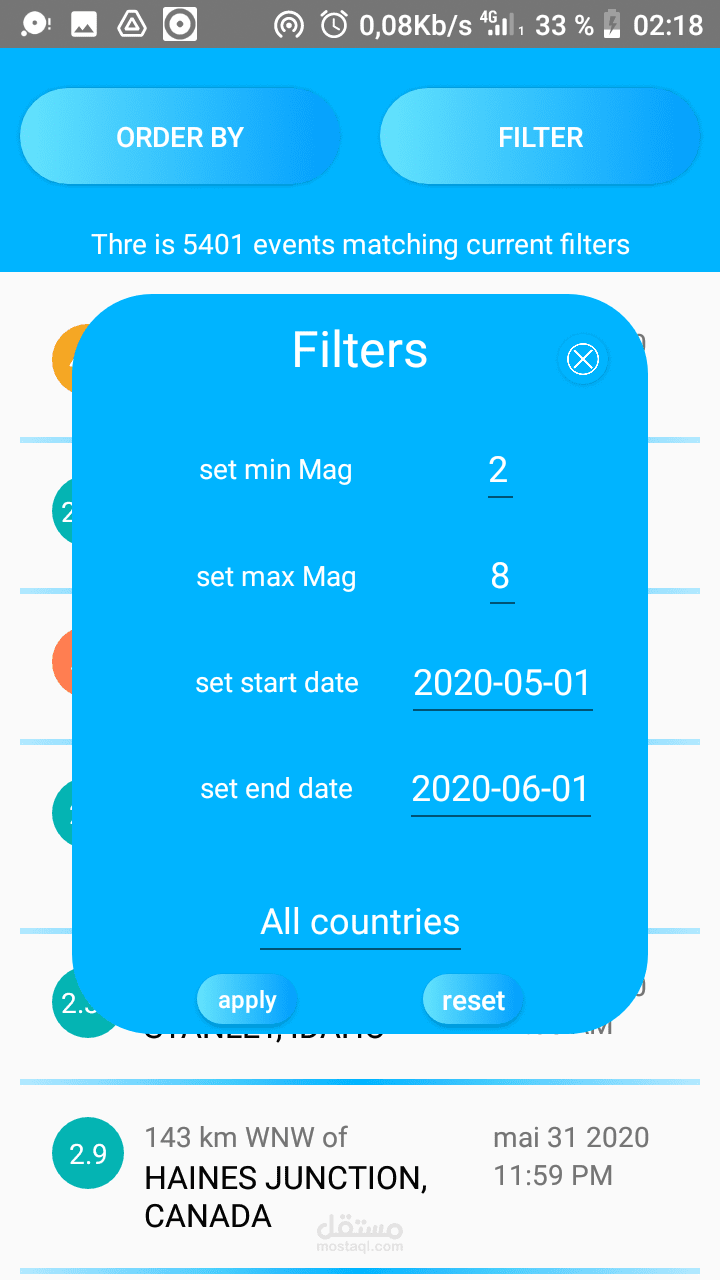 اكتشف نشاط الزلازل في جميع أنحاء العالم مع العديد من الفلاتر والأوامر ، حتى تتمكن من رؤية أي نتيجة تريدها.