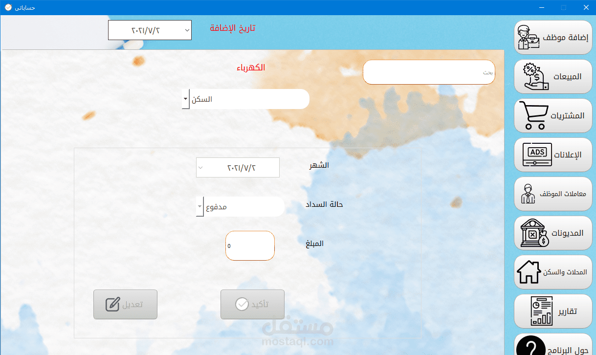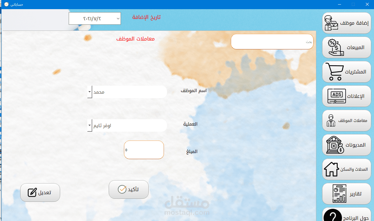 برنامج حسابات لإدارة الأنشطة التجارية و المحلات