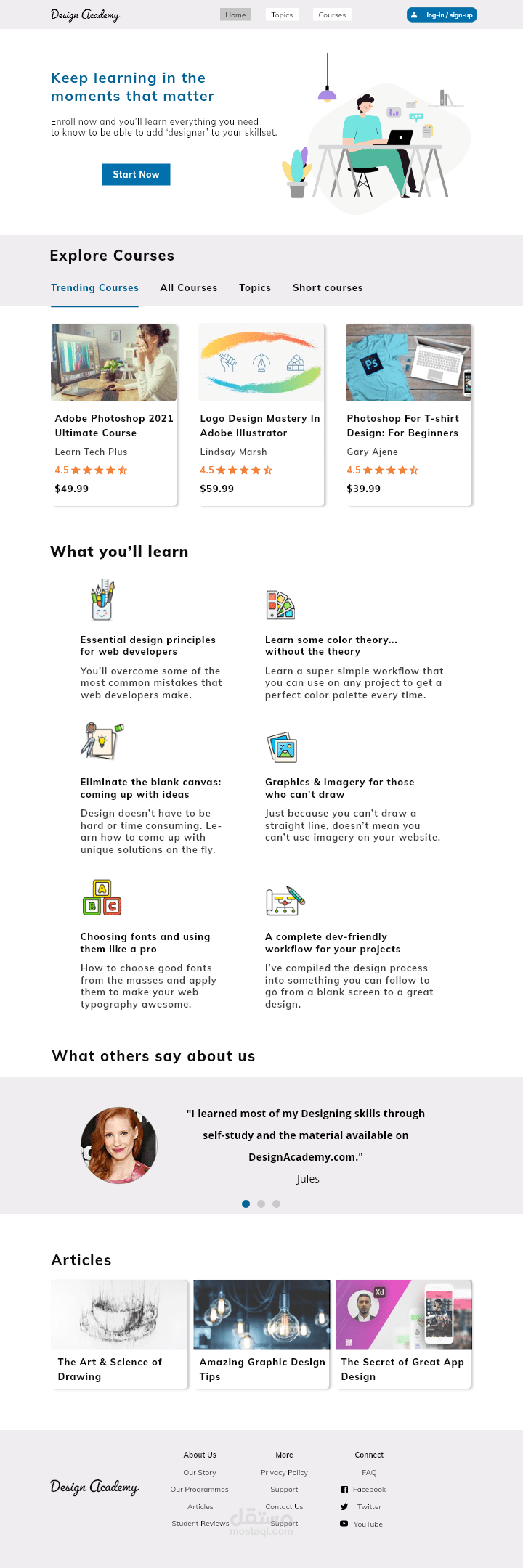 موقع الكتروني مختص بتقديم دورات تدريبية مختلفة في مجال التصميم