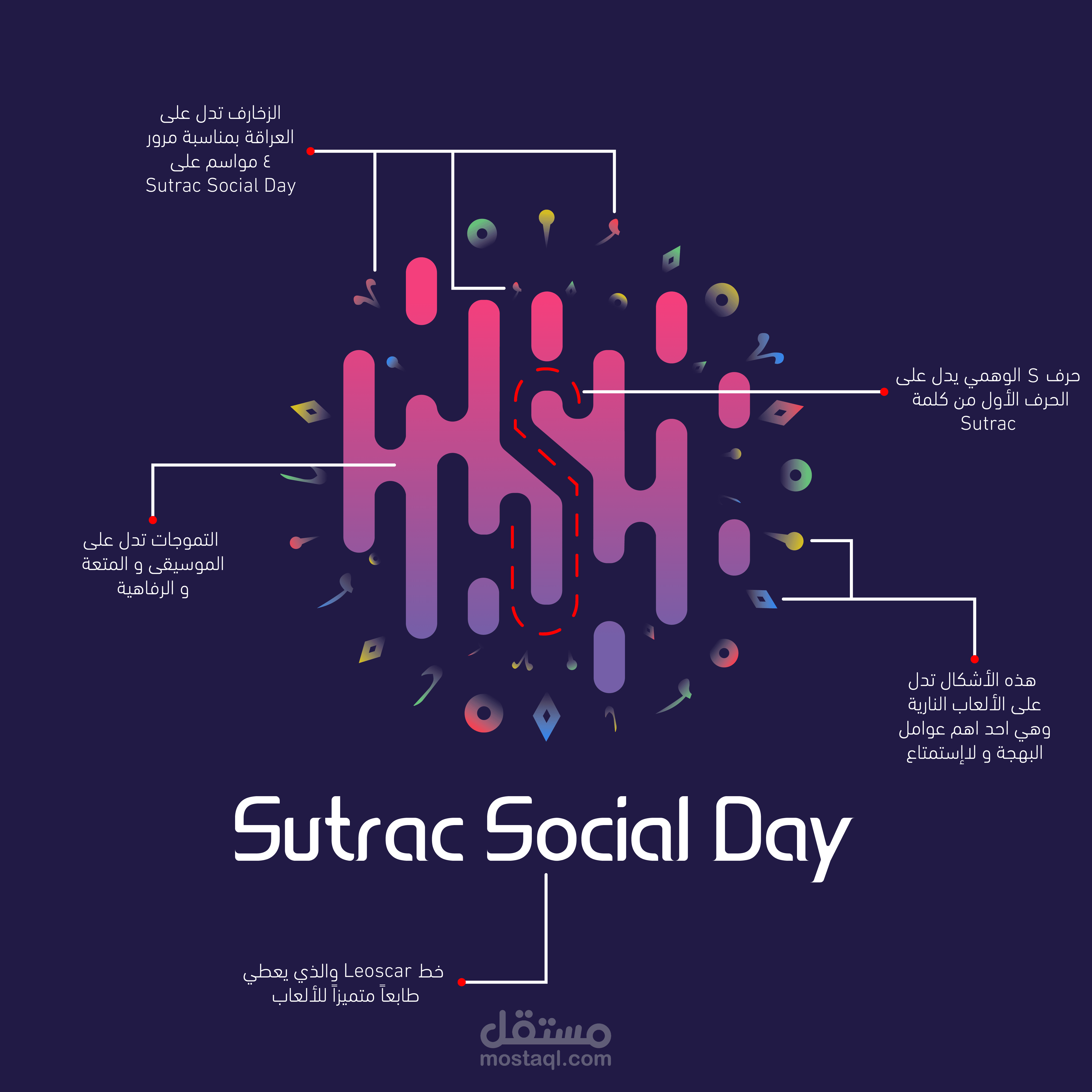 sutrac social day هو يوم سنوي تقيم فيه الشركة احتفالا لموظفيها وصممنا هذا الشعار تماشياً مع هذه المناسبة